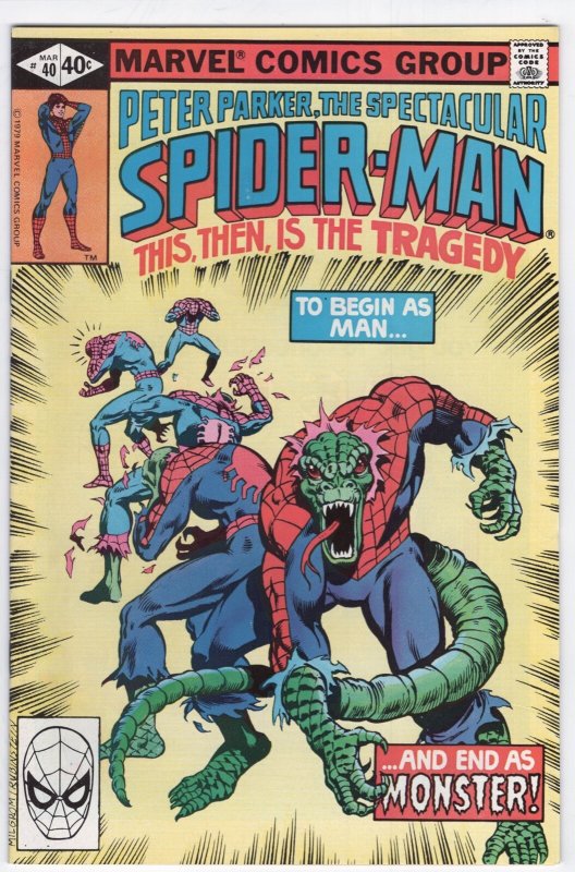 Spectacular spider-man #40 - 6.5 - wp description:this sharp, unrestored copy is complete, fully readable and has both covers attached. The book has very high cover gloss, a very tight spine and white pages. This book features spider-man and turns into a lizard. The book is sent in a mylar sleeve with a backing board. Condition is a very conservatively graded 6.5, fn+.Shipping information:combine our auctions and $ave on shipping!Please remember that media rate may take up to 4 weeks delivery.Fedex services available.Nevada residents, please add sales tax.We accept paypal, mastercard, visa, discover, american express.Notes and fine print: welcome to redbeard's book den! For most that have collected comic books for the last 30 years, you have probably heard of us. Redbeard's founder and current owner is ron pussell (aka redbeard), senior overstreet price guide consultant since 1980.Redbeard's book denpo box 217crystal bay, nv 89402-0217 _gsrx_vers_1730 (gs 9.9.4 (1730))