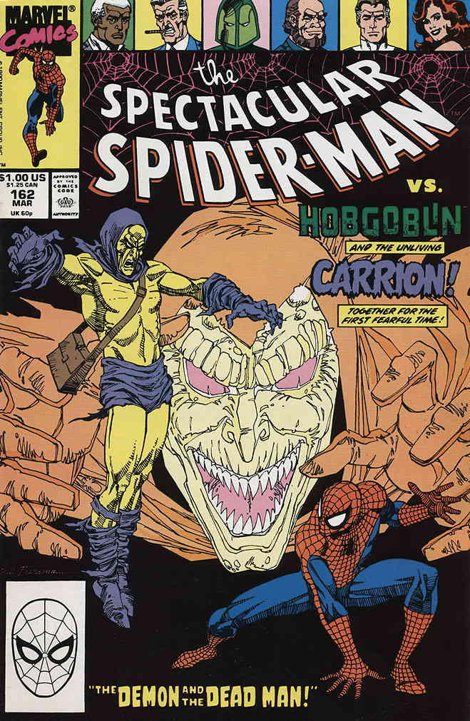Item: Spectacular Spider-Man, The #162 | Publisher: Marvel | Cover Date: March 1990 | Writer: Gerry Conway | Artist: Sal Buscema | Cover Artist: Sal Buscema | Appearances: Spider-Man, Mr. Fantastic, Hobgoblin II, Carrion II, Mary Jane Parker, J. Jonah Jameson, Robbie Robertson | Storylines: The Demon and the Dead Man | Notes: Versus Carrion | With Economy shipping, each additional comic ships for just 50 cents more to customers in the USA. This listing contains a stock photo and information from ComicBase™ and © Human Computing. The stock photo is for reference only. If you would like to see a photo of the actual item, please message us prior to purchasing.Seller Information
