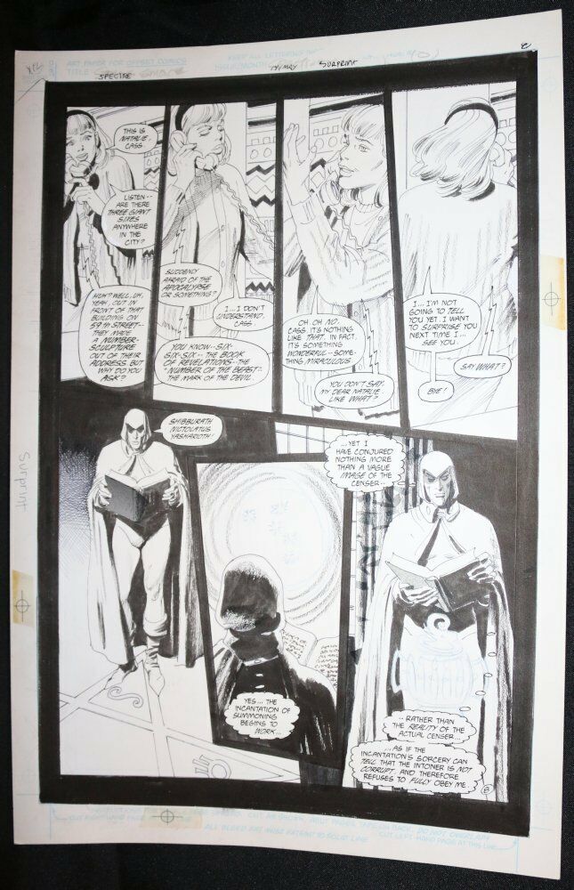Spectre #14 p.8 - LA - Spectre Conjuring - 1988 art by Gray MorrowSize: 13" x 20"This item was uploaded by Bobby. If there are any problems with your order whatsoever, please message us before leaving feedback and we'll be happy to work with you to fix the situation!We ship worldwide, combine purchases, and charge exact shipping. The price may vary based on size, weight, and location. If you are automatically overcharged for shipping, message us and we'll be happy to revise the invoice or refund you the excess amount. If you have any questions regarding shipping, please message us.International Buyers - Please Note: Import duties, taxes, and charges are not included in the item price or shipping cost. These charges are the buyer's responsibility. Please check with your country's customs office to determine what these additional costs will be prior to bidding or buying. Payment can be made by PayPal and credit cards directly. 70,000+ items in total in my Hip store! Frequently Asked Questions: Is this original artwork? Yes! I am a professional comic book art dealer with 20+ years experience. The image pictured is original art unless otherwise described. What is your base shipping for art? $10 for Domestic, International varies depending on location. Please use Hip's shipping calculator for specifics. How do you ship comics?We ship in rigid cardboard mailers to protect your comic book from the worst the mail system has to offer. Price varies based on the number of books you purchase, but we try to keep costs as low as we can and charge exact shipping. If it looks unusually high to you please send us a message and we'll be happy to double check for you. What is your base shipping for CGC comics? Domestic for CGCs are $10 for the first and $5 for each additional one you add. Do you combine shipping? Yes, of like items. Such as: several comics can fit in one cardboard mailer, as can more than one record. Multiple art pages can easily be combined because they are light and thin. Where combined shipping differs is with size and weight. For instance, two statues require a much bigger box. Same goes for CGCs, as the package gets bigger and heavier as you go. Do you ship well? I've had some bad experiences... You needn't worry; we are professionals who value your business and want your item to arrive safely as much as you do. I have been collecting for over 30 years. I send out items the way I would like to receive them. The tracking says my item is "OUT FOR DELIVERY" in New Jersey. Why is that?If the tracking indicates that the item is "OUT FOR DELIVERY" in NJ don't worry, it's just what the tracking says when it's carried over from the postman to the sorting center. This is normal for our Post Office and will not impact you receiving your item in a timely matter.Have these CGCs had any previous owners? No. I have personally sent in almost all of these to CGC and had them returned to me, offering them fresh to the market for the 1st time. I see the word STAT when describing the art page I'm interested in. What's a STAT? A STAT is essentially a photocopy glued on to one or more of the panels by the artist done during production of the piece and is not original artwork. We will do our best to clearly identify what's a STAT or what isn't on your page, if indeed it contains one. I changed my mind after successfully winning the auction or fixed price listing, will you cancel the transaction? Please only bid or hit BUY IT NOW if you are willing to follow through and pay for the item, we will not cancel the transaction. As a seller, Hip penalizes us every time we cancel an order, so it is detrimental to our business to do so. Therefore if you will not pay, then you'll have to let Hip cycle this to an "unpaid item" and accept whatever action Hip deems necessary. 70,000+ items in total in my Hip store! MEET OUR STAFF: "At Anthony's Comic Book Art we're caffeinated to give you excellent customer service!" Pictured left to right: Connelly, Bobby, Anthony, and ShannonAS SEEN ON TV: I have been buying and selling artwork and comics for about 20 years. If you are new to buying art or comics feel free to ask any questions that you may have. Anthony is always interested in doing business and answering your questions feel free to call or e-mail me to let me know what you have. This # is text enabled as well. 65,000+ items in total in my Hip store! Small, Regular, and Large Portfolios available; see my Hip store! Froo | Froo Cross Sell, Free Cross Sell, Cross promote, Hip Marketing, Hip listing Apps, Hip Apps, Hip Application Froo | Froo Cross Sell, Free Cross Sell, Cross promote, Hip Marketing, Hip listing Apps, Hip Apps, Hip Application