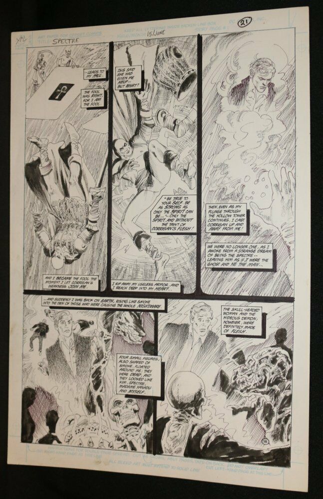 Spectre #15 p.18 - LA - Spectre Casts Corrigan Away from Him as he Plummets - 1988 art by Gray MorrowSize: 13" x 20"This item was uploaded by Bobby. If there are any problems with your order whatsoever, please message us before leaving feedback and we'll be happy to work with you to fix the situation!We ship worldwide, combine purchases, and charge exact shipping. The price may vary based on size, weight, and location. If you are automatically overcharged for shipping, message us and we'll be happy to revise the invoice or refund you the excess amount. If you have any questions regarding shipping, please message us.International Buyers - Please Note: Import duties, taxes, and charges are not included in the item price or shipping cost. These charges are the buyer's responsibility. Please check with your country's customs office to determine what these additional costs will be prior to bidding or buying. Payment can be made by PayPal and credit cards directly. 70,000+ items in total in my Hip store! Frequently Asked Questions: Is this original artwork? Yes! I am a professional comic book art dealer with 20+ years experience. The image pictured is original art unless otherwise described. What is your base shipping for art? $10 for Domestic, International varies depending on location. Please use Hip's shipping calculator for specifics. How do you ship comics?We ship in rigid cardboard mailers to protect your comic book from the worst the mail system has to offer. Price varies based on the number of books you purchase, but we try to keep costs as low as we can and charge exact shipping. If it looks unusually high to you please send us a message and we'll be happy to double check for you. What is your base shipping for CGC comics? Domestic for CGCs are $10 for the first and $5 for each additional one you add. Do you combine shipping? Yes, of like items. Such as: several comics can fit in one cardboard mailer, as can more than one record. Multiple art pages can easily be combined because they are light and thin. Where combined shipping differs is with size and weight. For instance, two statues require a much bigger box. Same goes for CGCs, as the package gets bigger and heavier as you go. Do you ship well? I've had some bad experiences... You needn't worry; we are professionals who value your business and want your item to arrive safely as much as you do. I have been collecting for over 30 years. I send out items the way I would like to receive them. The tracking says my item is "OUT FOR DELIVERY" in New Jersey. Why is that?If the tracking indicates that the item is "OUT FOR DELIVERY" in NJ don't worry, it's just what the tracking says when it's carried over from the postman to the sorting center. This is normal for our Post Office and will not impact you receiving your item in a timely matter.Have these CGCs had any previous owners? No. I have personally sent in almost all of these to CGC and had them returned to me, offering them fresh to the market for the 1st time. I see the word STAT when describing the art page I'm interested in. What's a STAT? A STAT is essentially a photocopy glued on to one or more of the panels by the artist done during production of the piece and is not original artwork. We will do our best to clearly identify what's a STAT or what isn't on your page, if indeed it contains one. I changed my mind after successfully winning the auction or fixed price listing, will you cancel the transaction? Please only bid or hit BUY IT NOW if you are willing to follow through and pay for the item, we will not cancel the transaction. As a seller, Hip penalizes us every time we cancel an order, so it is detrimental to our business to do so. Therefore if you will not pay, then you'll have to let Hip cycle this to an "unpaid item" and accept whatever action Hip deems necessary. 70,000+ items in total in my Hip store! MEET OUR STAFF: "At Anthony's Comic Book Art we're caffeinated to give you excellent customer service!" Pictured left to right: Connelly, Bobby, Anthony, and ShannonAS SEEN ON TV: I have been buying and selling artwork and comics for about 20 years. If you are new to buying art or comics feel free to ask any questions that you may have. 65,000+ items in total in my Hip store! Small, Regular, and Large Portfolios available; see my Hip store! Froo | Froo Cross Sell, Free Cross Sell, Cross promote, Hip Marketing, Hip listing Apps, Hip Apps, Hip Application Froo | Froo Cross Sell, Free Cross Sell, Cross promote, Hip Marketing, Hip listing Apps, Hip Apps, Hip Application