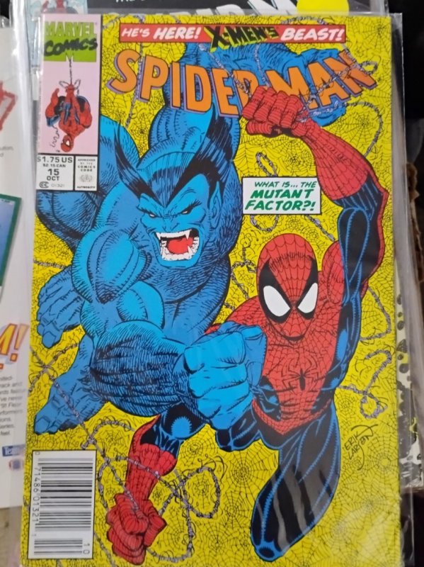 SPIDER-MAN # 15 1991 MARVEL ERIK LARSEN BEAST MUTANT FACTOR NEWSTAND VARIANT