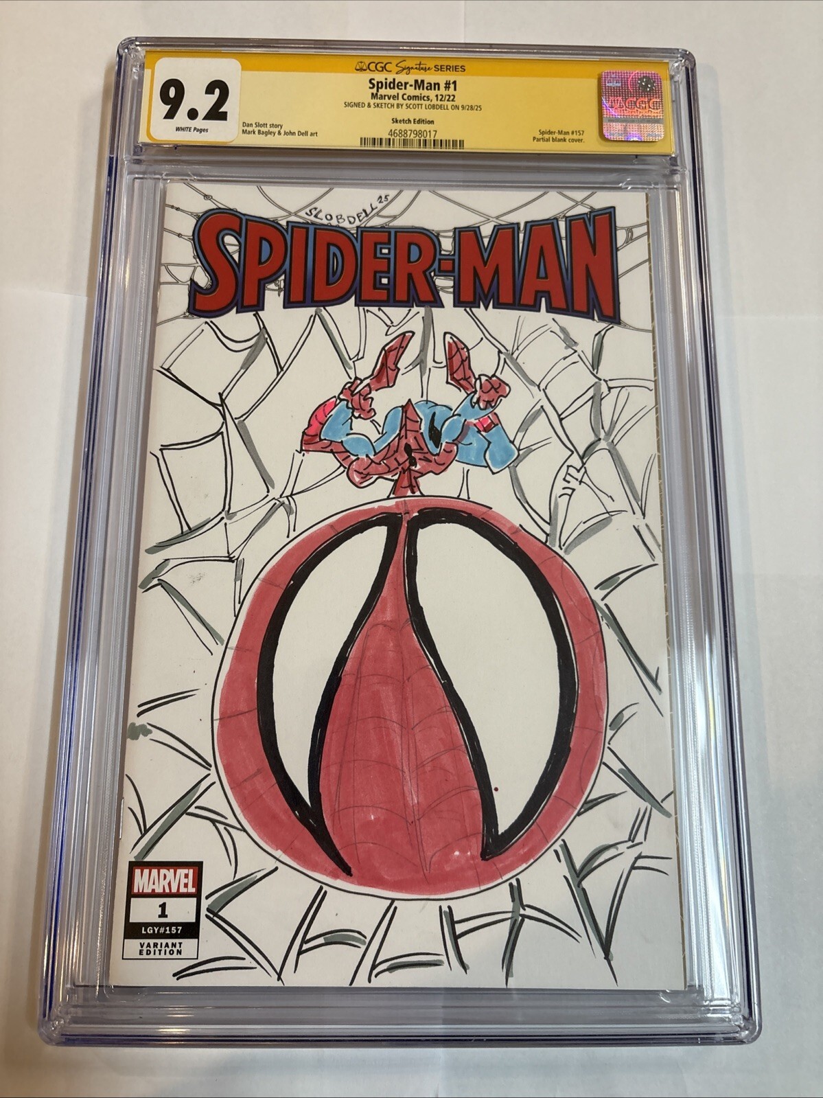 Grade: 9.2 Near Mint-Dive into the thrilling world of your favourite wall-crawler with Spider-Man (2022) #1, a must-have for any Marvel enthusiast. Graded 9.2 Near Mint- by the Certified Guaranty Company (CGC), this comic book boasts an impeccable standard of quality, ensuring a pristine addition to your collection. Featuring the modern age of comics, this issue is a testament to the artistry of Scott Lobdell, both as a writer and an artist, capturing the essence of the Spider-Man character.This exclusive piece is further enhanced by Scott Lobdell's signature, adding a personal touch for fans and collectors alike. Published by Marvel Comics in 2022, this comic book is a part of the 'Sketch' series, reflective of the rich tradition of US Comics. Embark on an adventure with the CGC-certified Spider-Man issue that promises to be a standout in any superhero collection.