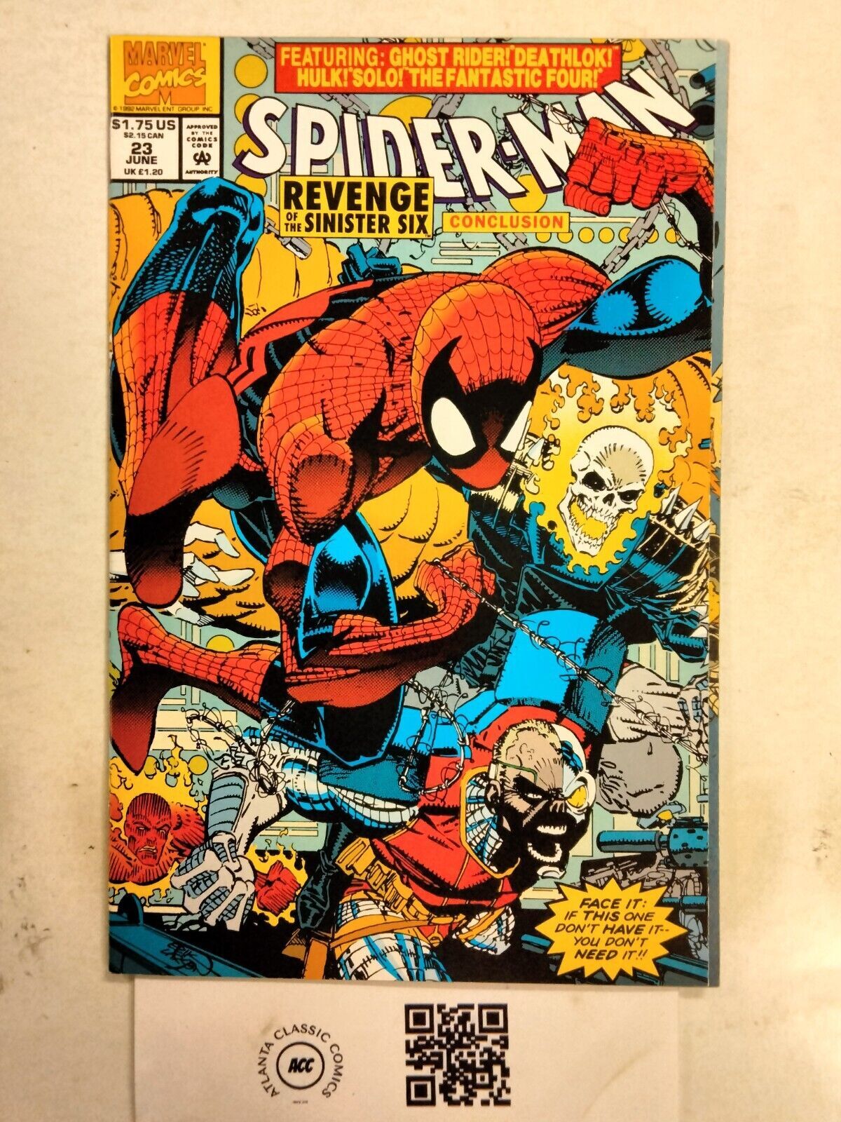 If you combine auction items with BIN (Buy It Now) items, the shipping rates divert to our combined shipping rate tables & we do not offer free shipping. * Important Stuff! ***If you combine listings that offer free shipping with listings that do not, our combined shipping rates (listed below) will be applied to the whole order, and the order will not ship for free unless all items apart of the combined order offered free shipping on their individual listings.**In Addition, if you combine multiple items, the combined shipping rates we'll use are whatever the most expensive displayed option is. Domestic Combined shipping rates:2-5 Books $6.98 6-12 Books $7.9813-20 Books $8.98 21-30 Books $9.9831-45 Books $10.98 46-65 Books $11.9866-85 Books $14.98 86-115 Books $19.98*If you have over 2 TPB/Graphic Novels in one invoice an additional charge of $1/per 3 TPB's will apply.** If your order is over 10 total listings, we'll charge an extra $1 per 10 items. So 10-19 items would be the above combined shipping rate + $1. 20-29 + $2, etc.International Shipping:International Bidders / Buyers are welcome. Please wait before paying so we can invoice you with the correct shipping charge. Feel free to request an exact amount from us prior to buying as Hip's shipping calculator can be incorrect.Condition Information:We attempt to provide an accurate grade to any single issue we sell. This grade can be found in the listing title using one of the following distinctions: GD (2.0), VG (4.0), FN (6.0), VF (8.0), NM (9.4), or a combination of two of them. On lots of books, in general, almost all of the issues we sell are going to be in AT LEAST VG condition.That being said, please look closely at the provided images of the book(s) you are buying; as you will receive exactly what is pictured.* Less Important Stuff! *We accept payments via Hip managed payments. Local Pickup is available in Atlanta.We buy comic book collections of any size, graphic novels, toys, original art, Funkos, & records! Feel free to message us for more details.Please reach out to us if ANYTHING about the item you buy isn't satisfactory before leaving less than positive feedback. We will be happy to resolve any issues and would appreciate the opportunity to do so before something less than positive is said. We're only human and are totally capable of making mistakes so please offer us the courtesy of coming to us first so we can fix whatever is/was wrong with your order.All pictures/scans are of the books you will actually be receiving & all books are sold "As Is". We DO NOT use stock photo's.Return PolicyALL Returns ARE accepted. We charge a 15% restocking fee for a non-shipping damaged OR disclosed defect return. Meaning, if you'd like to return a book that arrived safely as pictured with no additional or undisclosed defects, that's when the restocking fee is assessed. We reimburse original shipping if an item is returned because it arrives damaged or with an undisclosed defect. We do not reimburse original shipping if an item is returned "just because." We do not reimburse return postage in either scenario.Seller Information