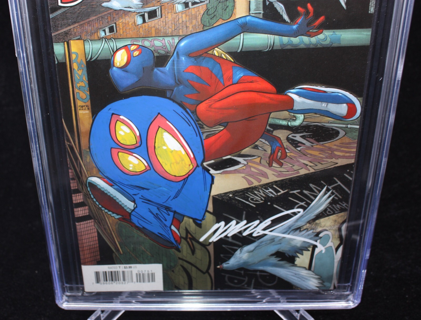Grade: 9.8 Near Mint/MintSpider-Man #7 CGC (9.8) Signed & Sketched by Humberto Ramos - 2023Size: 8" x 13"This item was uploaded by RV.If you have any specific questions or requests, please ask us prior to ordering and we'll get back to you as soon as we can. If there are any problems with your order whatsoever, please message us before leaving feedback and we'll be happy to work with you to fix the situation!We ship worldwide, combine purchases, and charge exact shipping. The price may vary based on size, weight, and location. If you are automatically overcharged for shipping, message us and we'll be happy to revise the invoice or refund you the excess amount. If you have any questions regarding shipping, please message us.International Buyers - Please Note: Import duties, taxes, and charges are not included in the item price or shipping cost. These charges are the buyer's responsibility. Please check with your country's customs office to determine what these additional costs will be prior to bidding or buying. Payment can be made by PayPal and credit cards directly.120,000+ items in total in my Hip store! Frequently Asked Questions: When are your operation hours? Our in office hours are Monday - Friday, 11 am - 8 pm. We are not open on weekends, so if you send us a request on Friday evening we won't get back to you until Monday afternoon. Please don't take it as us ignoring you! We will work on your request Monday and get back to you as soon as we can. Also, if you order from us on a Friday evening or Saturday morning we won't start processing your order until we open on Monday. That means on Monday it will be pulled and prepped for shipping, then picked up by the postman on Tuesday morning. When will you ship my item? The tracking hasn't moved. We realize you're eager to get your item, so if the tracking hasn't moved in a few days please don't be concerned. We give the postman a lot of packages daily, sometimes as many as 100, so he does not scan each item for us upon pickup as he says it would be too time consuming for him to do so. If you get a tracking number from us, that almost always means your item was picked up by the postman the next business day. The USPS is also imperfect. There are times when the tracking won't even show movement until it's in your area's regional distribution center. This is normal in our experience. Is the item pictured the exact one for sale?Yes! We don't use stock images and go through great lengths to photograph everything we list. The item pictured is exactly what you should receive UNLESS it is a fixed price listing with multiple items available.Have these CGCs had any previous owners? No. I have personally sent in almost all of these to CGC and had them returned to me, offering them fresh to the market for the 1st time. What is your base shipping for CGC comics? Domestic for CGCs are $10 for the first and $5 for each additional one you add. How do you ship comics?We ship in rigid cardboard mailers to protect your comic book from the worst the mail system has to offer. Price varies based on the number of books you purchase, but we try to keep costs as low as we can and charge exact shipping. If it looks unusually high to you please send us a message and we'll be happy to double check for you. Do you combine shipping? Yes, of like items. Such as: several comics can fit in one cardboard mailer, as can more than one record. Multiple art pages can easily be combined because they are light and thin. Where combined shipping differs is with size and weight. For instance, two statues require a much bigger box. Same goes for CGCs, as the package gets bigger and heavier as you go. Do you ship well? I've had some bad experiences... You needn't worry; we are professionals who value your business and want your item to arrive safely as much as you do. I have been collecting for over 30 years. I send out items the way I would like to receive them. The tracking says my item is "OUT FOR DELIVERY" in New Jersey. Why is that?If the tracking indicates that the item is "OUT FOR DELIVERY" in NJ don't worry, it's just what the tracking says when it's carried over from the postman to the sorting center. This is normal for our Post Office and will not impact you receiving your item in a timely matter.I changed my mind after successfully winning the auction or fixed price listing, will you cancel the transaction? Please only bid or hit BUY IT NOW if you are willing to follow through and pay for the item, we will not cancel the transaction. As a seller, Hip penalizes us every time we cancel an order, so it is detrimental to our business to do so. Therefore if you will not pay, then you'll have to let Hip cycle this to an "unpaid item" and accept whatever action Hip deems necessary. 120,000+ items in total in my Hip store! AS SEEN ON TV I have been buying and selling artwork and comics for about 20 years. The artwork pictured are all one of kind originals unless otherwise described. If you are new to buying art feel free to ask any questions that you may have. 120,000+ items in total in my Hip store! Small, Regular, and Large Portfolios available; see my Hip store!