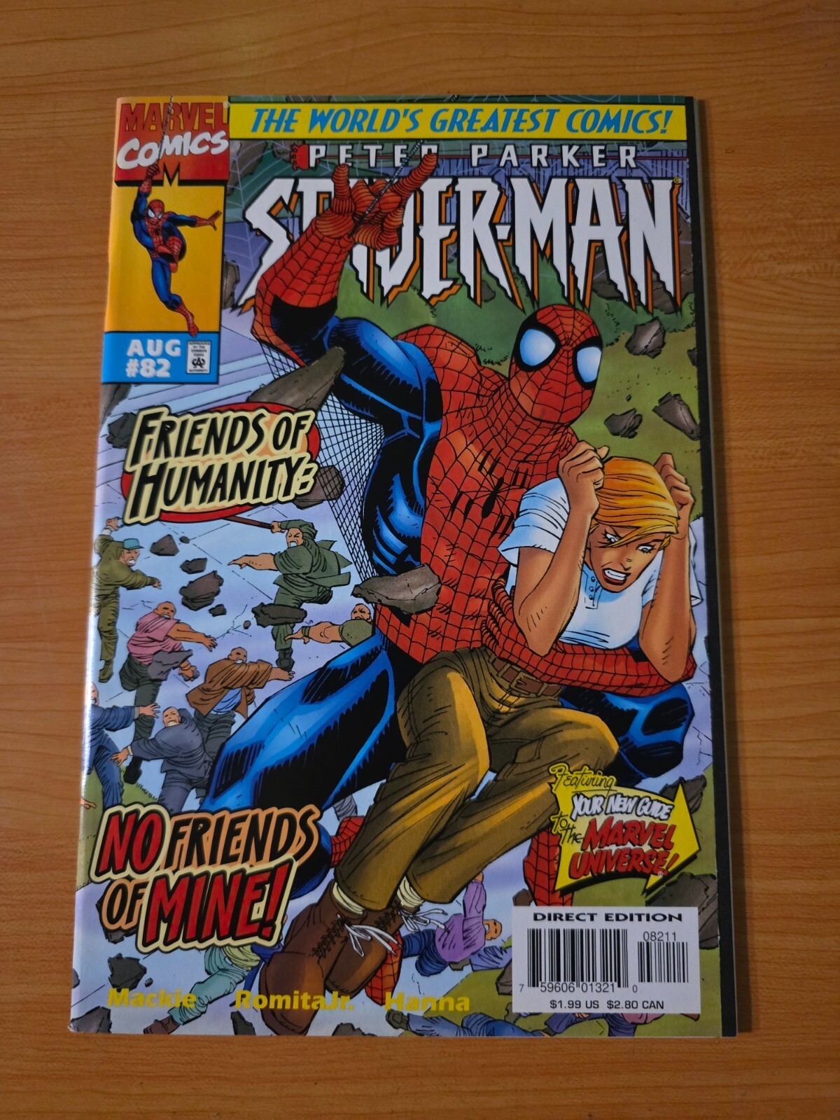 Item DescriptionSpider-Man #82 Direct Market EditionPublisher: Marvel ComicsPublished: 1997Item Grade/ConditionGrade: NEAR MINTFor more information about this grade and other grades, please see our grading standards.~ WE TAKE HIGH DEFINITION PICTURES OF OUR COMICS ~ For more detail use the ZOOM Function and check them out yourself! ~Shipping Info:United States: Comic Book & Magazine Orders of all sizes, big and small ship for a flat Single Shipping ChargeInternational: We use Calculated Shipping! ~ This insures that you get the LOWEST POSSIBLE COST! ~ Please give us one business day to calculate large orders! The Calculator for Hip is pretty bad for international, contact us if you are looking to order multiple books so we can help you make it work on the back end! As a courtesy to our customers, we insure all orders over 50$ US ~ YOU DONT PAY EXTRA!Delivery TimeWe process and ship all orders within 1 business days. Once shipped, estimated U.S. transit time is 2-10 business days; international 14-21 business days.(Orders placed on Friday afternoon as well as weekends will be shipped the next business day as we do not ship on the weekends).PackingOmnomax Traders has mastered packing to ensure our orders of a "damage-free transport."Using the following methods, we have seen a nearly perfect 99% success rate for undamaged comics!Here is how our orders ship:All Orders :Bagged AND Boarded, ALWAYS NO EXCEPTIONS!Shipped in a Gemini Comic Mailer OR Tightly secured between 4x stiff pieces of corrugated cardboard (double Sandwiched)Sealed on all 4 sides with strong packing tape (Items doesn't even wiggle).:*Now this method is nearly perfect! however we have seen damage happen to items ( only once or twice a year ) ~ this is often due to bad handling by the postal service. Always remember to contact us if this happens! we are committed to quality service!*Offers History