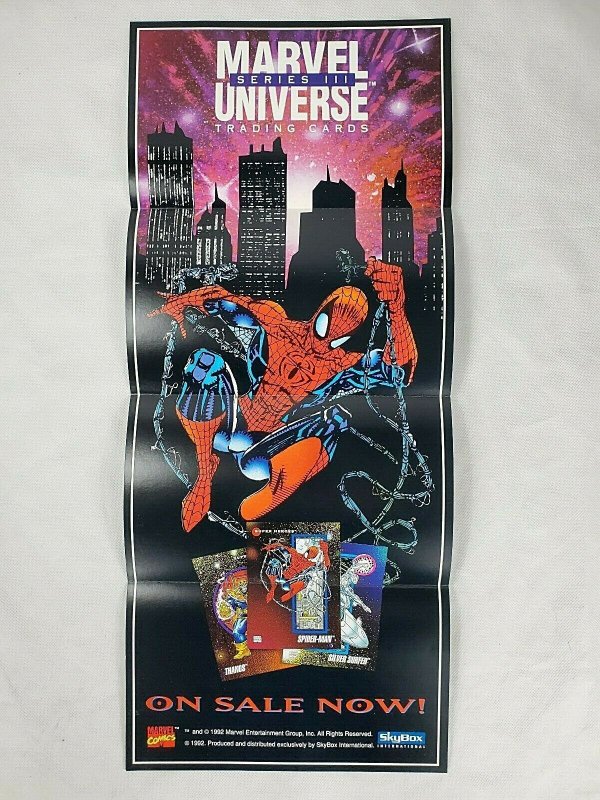 Spider Man poster Vintage Rare Marvel Universe Trading Cards 1992 skybox . 10" x 24". Grade for yourself .See Photos for grade. Bid with confidence. Selling off my personal collection .New listings daily. Please check back. Professionally shipped .