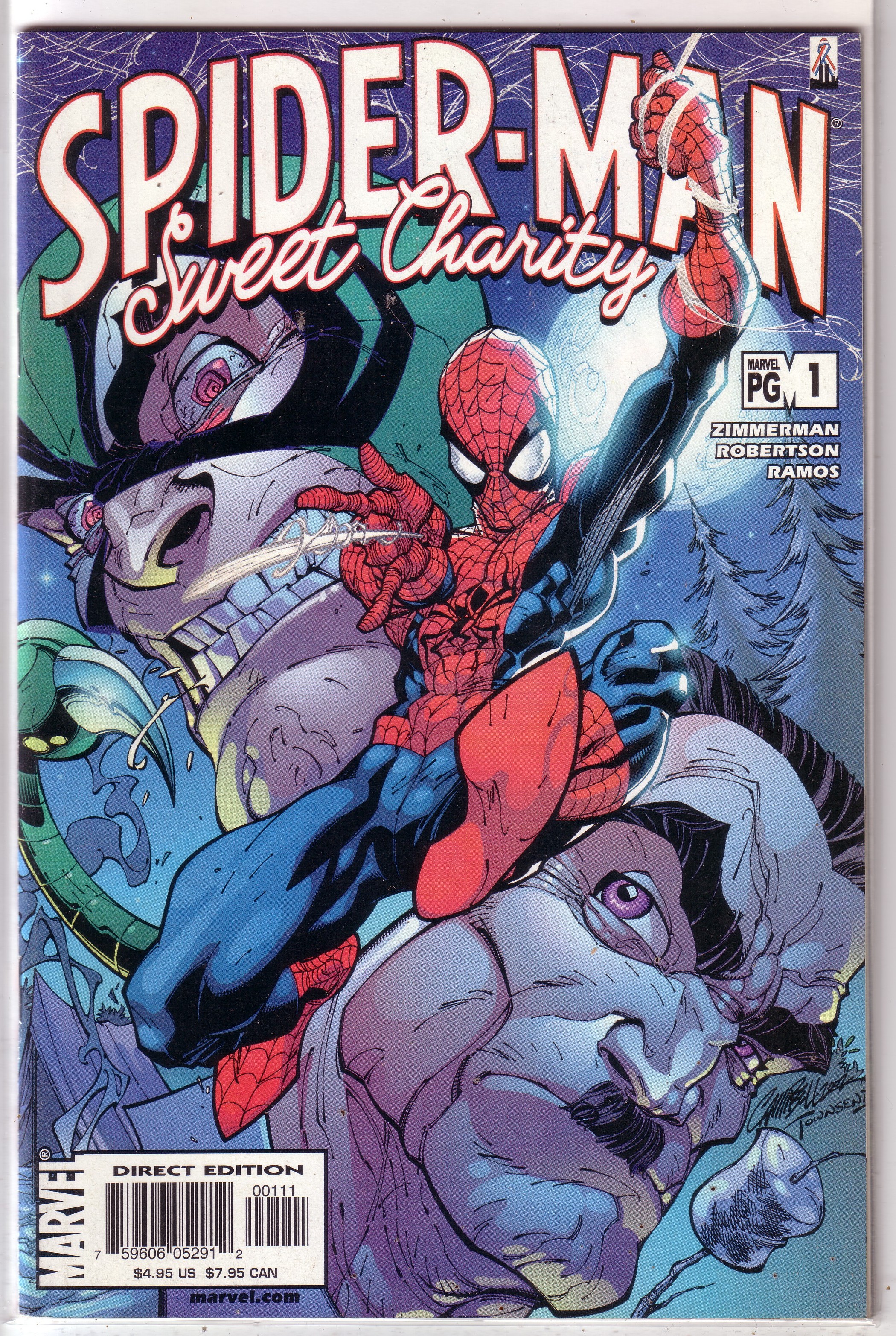 modern age Spiderman Spider Man super-hero comic book Spider-Man: Sweet Charity Vol 1 1 Spider-Man: Sweet Charity #1 Publisher: Marvel Comics Rating: PG Format: direct, 48 pages, one-shot Writer: Ron Zimmerman ... Read More