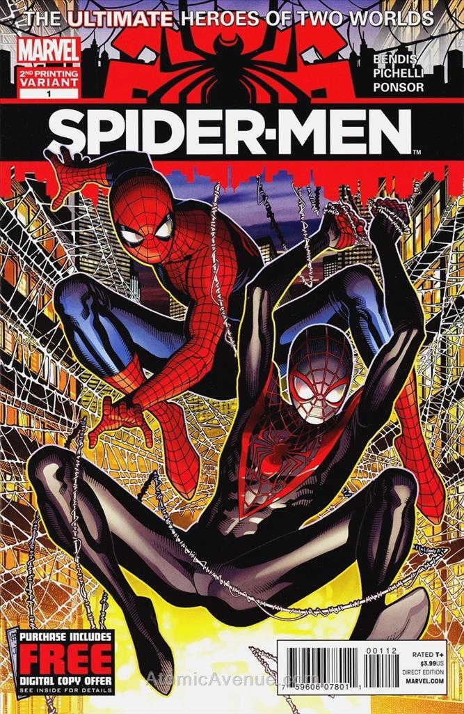 Item: Spider-Men #1 (2nd) | Publisher: Marvel | Cover Date: August 2012 | Writer: Brian Michael Bendis | Artist: Sara Pichelli | Cover Artist: Jim Cheung | Appearances: Spider-Man (Peter Parker), Spider-Man (Miles M ... Read More