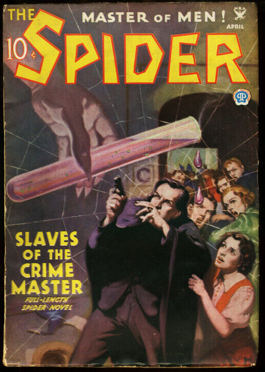Spider Issue: / Year: April 1935 Condition: VG/FNSlaves Of The Crime Master. This rare issue shows The Spider without his mask. Cover by John Howitt and interior illos by J. Fleming Gould. Publisher: PopularSku: U2-71-059 Over 100,000 mail orders processed! Buy with confidence.