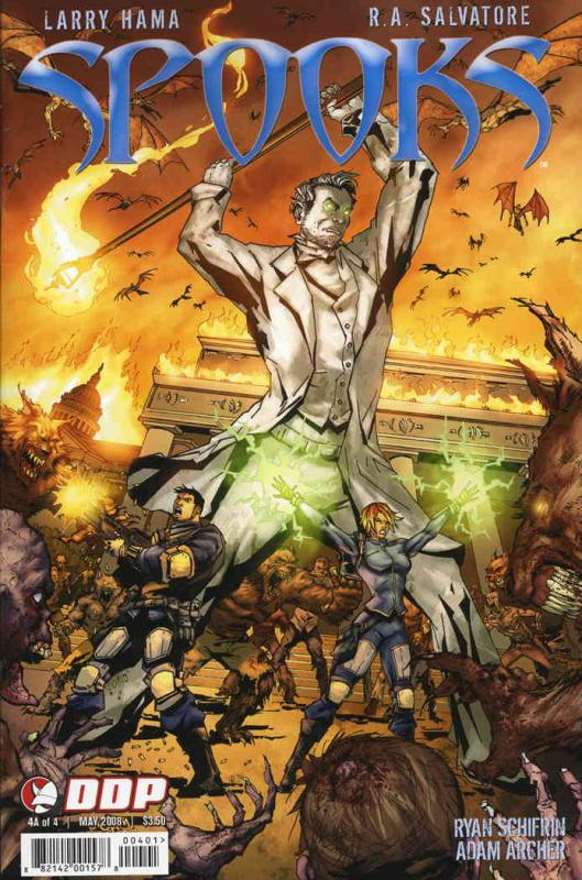 Item: Spooks #4A | Publisher: Devil's Due | Cover Date: May 2008 | Writer: R.A. Salvatore, Geno Salvatore, Ryan Schifrin, Larry Hama | Artist: Adam Archer | Cover Artist: Adam Archer, Jonny Rench | Notes: Cover A by ... Read More