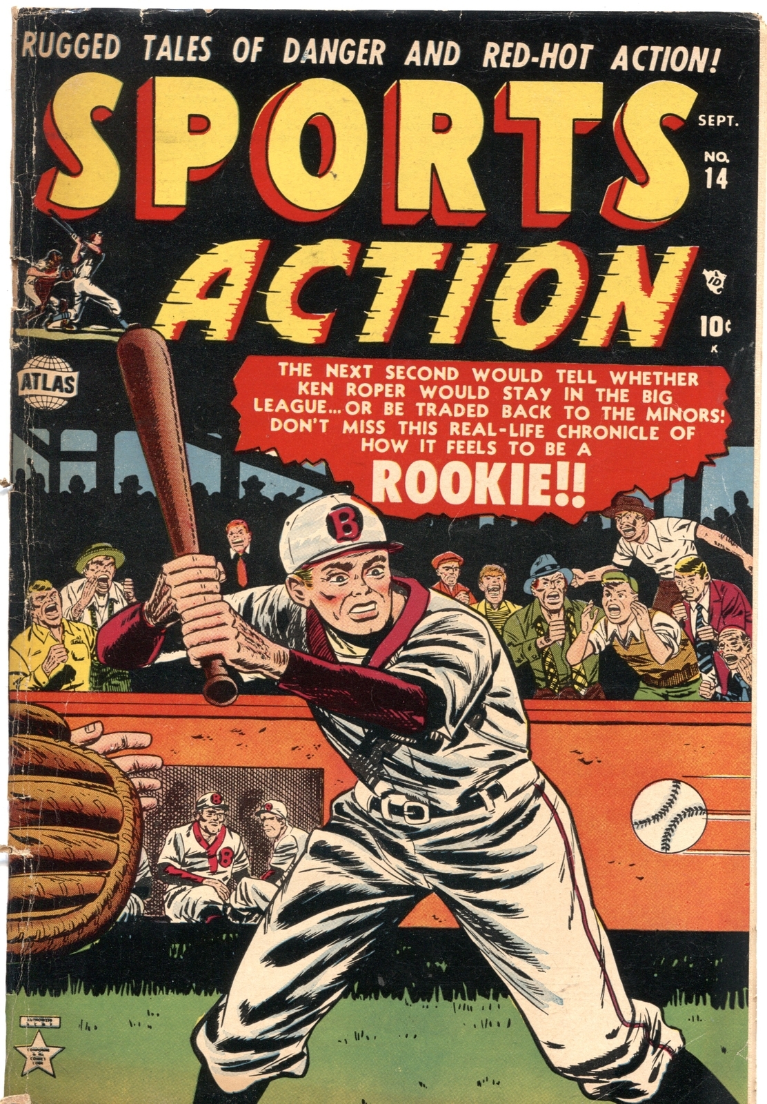 Grade: VGSports action #14---1952---baseball---boxing---olympics---atlas---rare glossy baseball cover olympics, boxing, baseball cover loose at top staple looks super high grade grade: vg sku: li-103-056