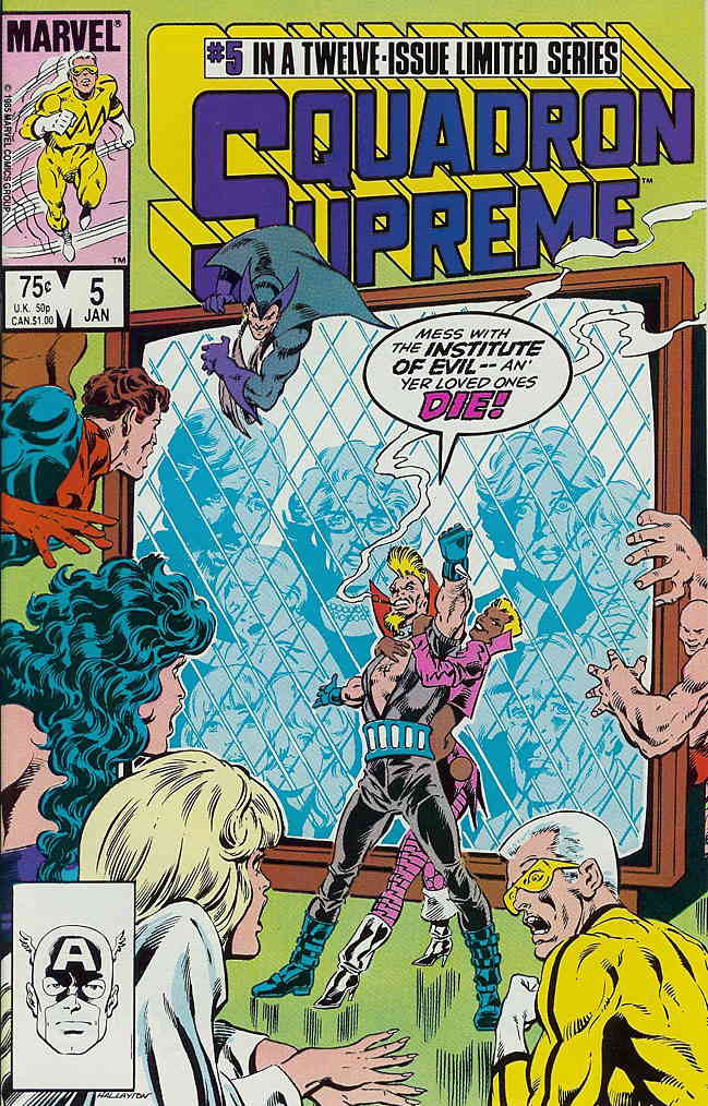 Item: Squadron Supreme #5 | Publisher: Marvel | Cover Date: January 1986 | Writer: Mark Gruenwald | Artist: Bob Hall | Cover Artist: Bob Hall | Appearances: Ape-X (Xina), Institute of Evil | Storylines: Turn-About | ... Read More