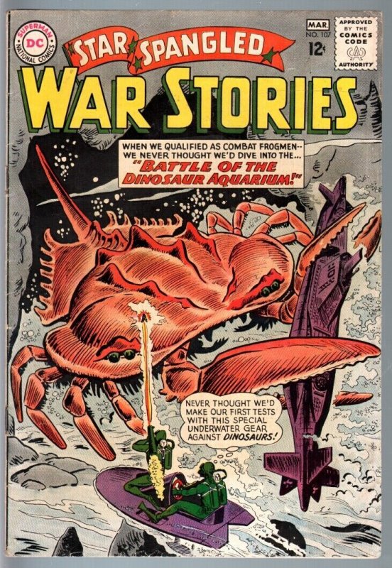 Star spangled war stories #107-1963-dc war comic-silver age-fn minus fn- crab monster. Dinosaur terror. Wwii. 1963 grade: fn- sku: u15-43-083
