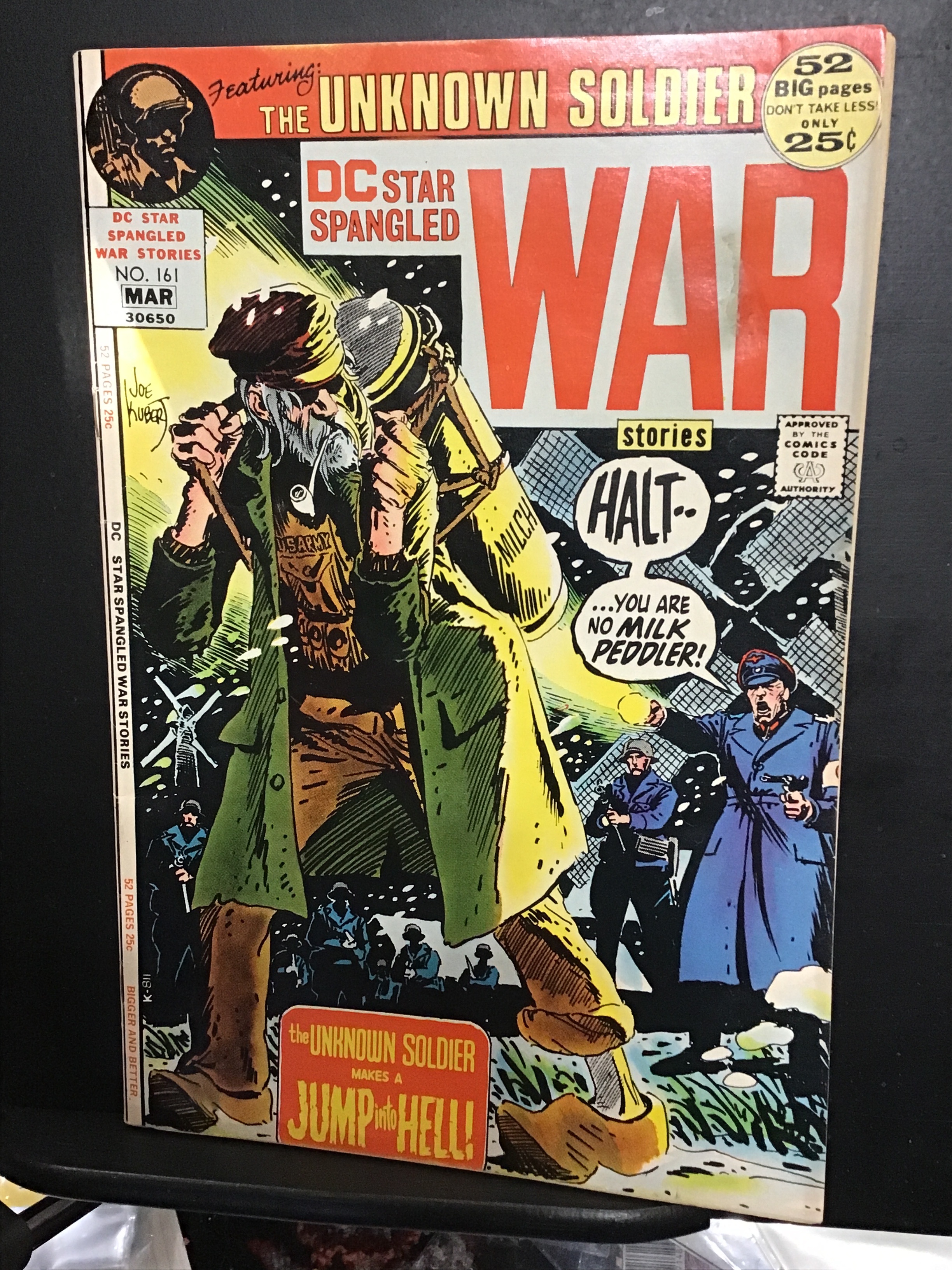 Star Spangled War Stories #161 (1972) Star Spangled War Stories #148 This book has deep rich color and nice eye-appeal on this all time classic unknown soldier cover. With Cream/slight heavy cream tint pages and Light green pages.. We have adjusted the grade accordingly. With A small sticker residue square on the word war in the title of the front cover and overall very light wear appropriate to grade.Seller Information