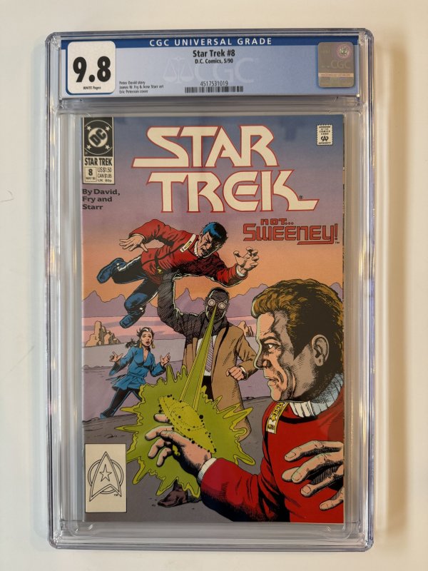 Star Trek #8 CGC 9.8 (1990)The pictures above represent the exact item you are going to receive. They are NOT stock pictures. There are no missing pages, rips or cutouts.I am not a professional grader, so please use the pictures above to determine the grade for yourself. I have tried to grade as accurately as possible.
