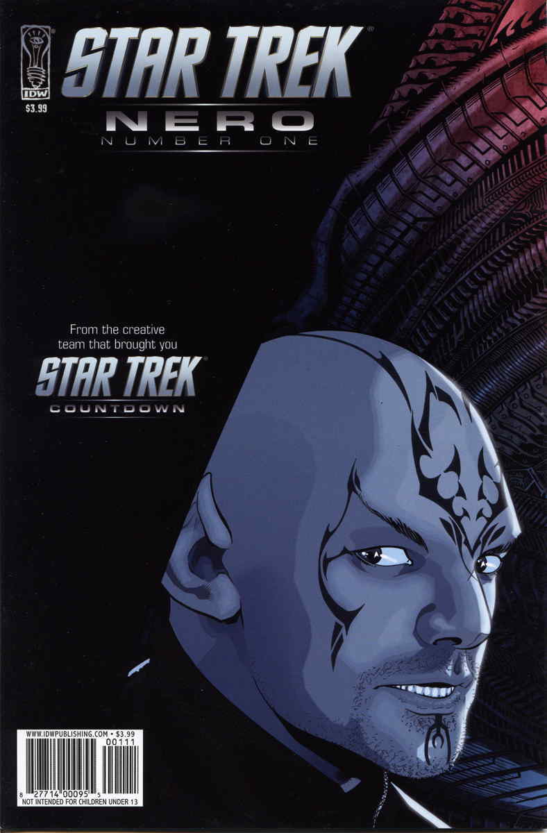 Item: Star Trek: Nero #1 | Publisher: IDW | Cover Date: August 2009 | Writer: Roberto Orci, Alex Kurtzman, Mike Johnson, Tim Jones | Artist: David Messina | Cover Artist: David Messina | With Economy shipping, each additional comic ships for just 50 cents more to customers in the USA. This listing contains a stock photo and information from ComicBase™ and © Human Computing. The stock photo is for reference only. If you would like to see a photo of the actual item, please message us prior to purchasing.Seller Information