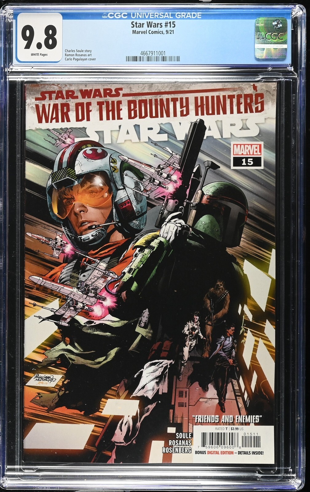 Star Wars #15 from 9/21 offers a glimpse into the era's iconic storytelling. This issue is a must-have for collectors. Add this CGC 9.8 graded comic to your collection today!Attribute DetailsCertNumber 4667911001DisplayGrade 9.8GradeCategory ModernPageQuality WHITEArtComments Charles Soule story, Ramon Rosanas art, Carlo Pagulayan coverCollectibleID 253885CollectibleType CTitle Star WarsIssue 15IssueDate 9/21Publisher Marvel ComicsYear 2021PopulationAtGrade 14population_9_2 1population_9_6 1population_9_8 14Sales History