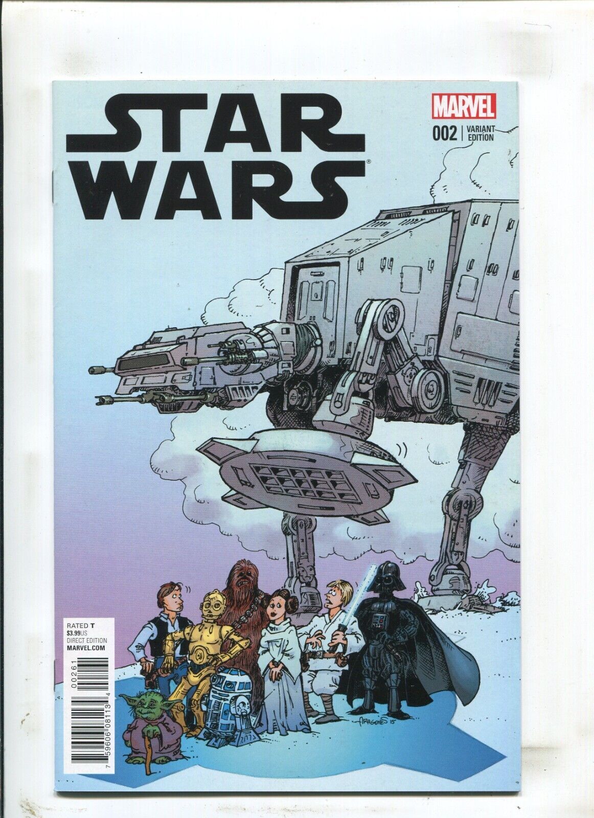Star Wars #2 - Sergio Aragones Variant / Has Two Front Covers (9.2) 2015Size: 7" x 10"This item was uploaded by ___LM___.WE COMBINE SHIPPING!!! Either wait for us to send you an invoice after you commit to buy or, if it makes you pay right away, message us back and we'll refund the excess charge. Buy as many single comic books as you want for one low flat shipping rate in the United States! International will be charged exact according to size and weight.If you have any specific questions or requests, please ask us prior to ordering and we'll get back to you as soon as we can.If there are any problems with your order whatsoever, please message us before leaving feedback and we'll be happy to work with you to fix the situation! We ship worldwide, combine purchases, and charge exact shipping. The price may vary based on size, weight, and location. If you are automatically overcharged for shipping, message us and we'll be happy to revise the invoice or refund you the excess amount. If you have any questions regarding shipping, please message us.International Buyers - Please Note:Import duties, taxes, and charges are not included in the item price or shipping cost. These charges are the buyer's responsibility.Please check with your country's customs office to determine what these additional costs will be prior to bidding or buying.Payment can be made by PayPal and credit cards directly.120,000+ items in total in my Hip store!Frequently Asked Questions:When are your operation hours?Our in office hours are Monday - Friday, 11 am - 8 pm. We are not open on weekends, so if you send us a request on Friday evening we won't get back to you until Monday afternoon. Please don't take it as us ignoring you! We will work on your request Monday and get back to you as soon as we can. Also, if you order from us on a Friday evening or Saturday morning we won't start processing your order until we open on Monday. That means on Monday it will be pulled and prepped for shipping, then picked up by the postman on Tuesday morning.When will you ship my item? The tracking hasn't moved.We realize you're eager to get your item, so if the tracking hasn't moved in a few days please don't be concerned. We give the postman a lot of packages daily, sometimes as many as 100, so he does not scan each item for us upon pickup as he says it would be too time consuming for him to do so. If you get a tracking number from us, that almost always means your item was picked up by the postman the next business day. The USPS is also imperfect. There are times when the tracking won't even show movement until it's in your area's regional distribution center. This is normal in our experience.Is the item pictured the exact one for sale?Yes! We don't use stock images and go through great lengths to scan or photograph everything we list. The item pictured is exactly what you should receive UNLESS it is a fixed price listing with multiple items available.Can you issue a COA?We can, upon request. Please make sure you leave us a note while checking out and shoot us a message immediately after requesting one, just to be sure.How do you grade?Grading is very subjective, but we are professionals with decades of grading experience between us who try the best we can to accurately describe the condition of the items we list.Anthony is an Overstreet Comic Book Price Guide AdvisorPlease see the grading chart below for a breakdown of how we grade:NOTE: We don't grade any raw books higher than 9.2, as once you go higher than that grading gets really subjective. If you buy a NM book from us, it may very well be higher than 9.2 but we play it safe and grade conservatively. 9.2 NM Near Mint 9.0 VF/NM Very Fine/Near Mint 8.5 VF+ Very Fine+ 8.0 VF Very Fine 7.5 VF- Very Fine- 7.0 FN/VF Fine/Very Fine 6.5 FN+ Fine+ 6.0 FN Fine 5.5 FN- Fine- 5.0 VG/FN Very Good/Fine 4.5 VG+ Very Good+ 4.0 VG Very Good 3.5 VG- Very Good- 3.0 GD/VG Good/Very Good 2.5 GD+ Good+ 2.0 GD Good 1.8 GD- Good- 1.5 FR/GD Fair/Good 1.0 FR Fair 0.5 PR PoorHow do you ship comics?We ship in rigid cardboard mailers to protect your comic book from the worst the mail system has to offer. Price varies based on the number of books you purchase, but we try to keep costs as low as we can and charge exact shipping. If it looks unusually high to you please send us a message and we'll be happy to double check for you.Do you combine shipping?Yes, of like items. Such as: several comics can fit in one cardboard mailer, as can more than one record. Multiple art pages can easily be combined because they are light and thin. Where combined shipping differs is with size and weight. For instance, two statues require a much bigger box. Same goes for CGCs, as the package gets bigger and heavier as you go.Do you ship well? I've had some bad experiences...You needn't worry; we are professionals who value your business and want your item to arrive safely as much as you do. I have been collecting for over 30 years. I send out items the way I would like to receive them.The tracking says my item is "OUT FOR DELIVERY" in New Jersey. Why is that?If the tracking indicates that the item is "OUT FOR DELIVERY" in NJ don't worry, it's just what the tracking says when it's carried over from the postman to the sorting center. This is normal for our Post Office and will not impact you receiving your item in a timely matter.What is the difference between a RUN and a LOT?Good question. A RUN will be a collection of consecutive issues with no breaks in between them. If it says RUN of #s 1 - 50 you will receive 50 consecutive comics. A LOT will be within a certain range, so a 50pc LOT will not contain consecutive books.I changed my mind after successfully winning the auction or fixed price listing, will you cancel the transaction?Please only bid or hit BUY IT NOW if you are willing to follow through and pay for the item, we will not cancel the transaction. As a seller, Hip penalizes us every time we cancel an order, so it is detrim
