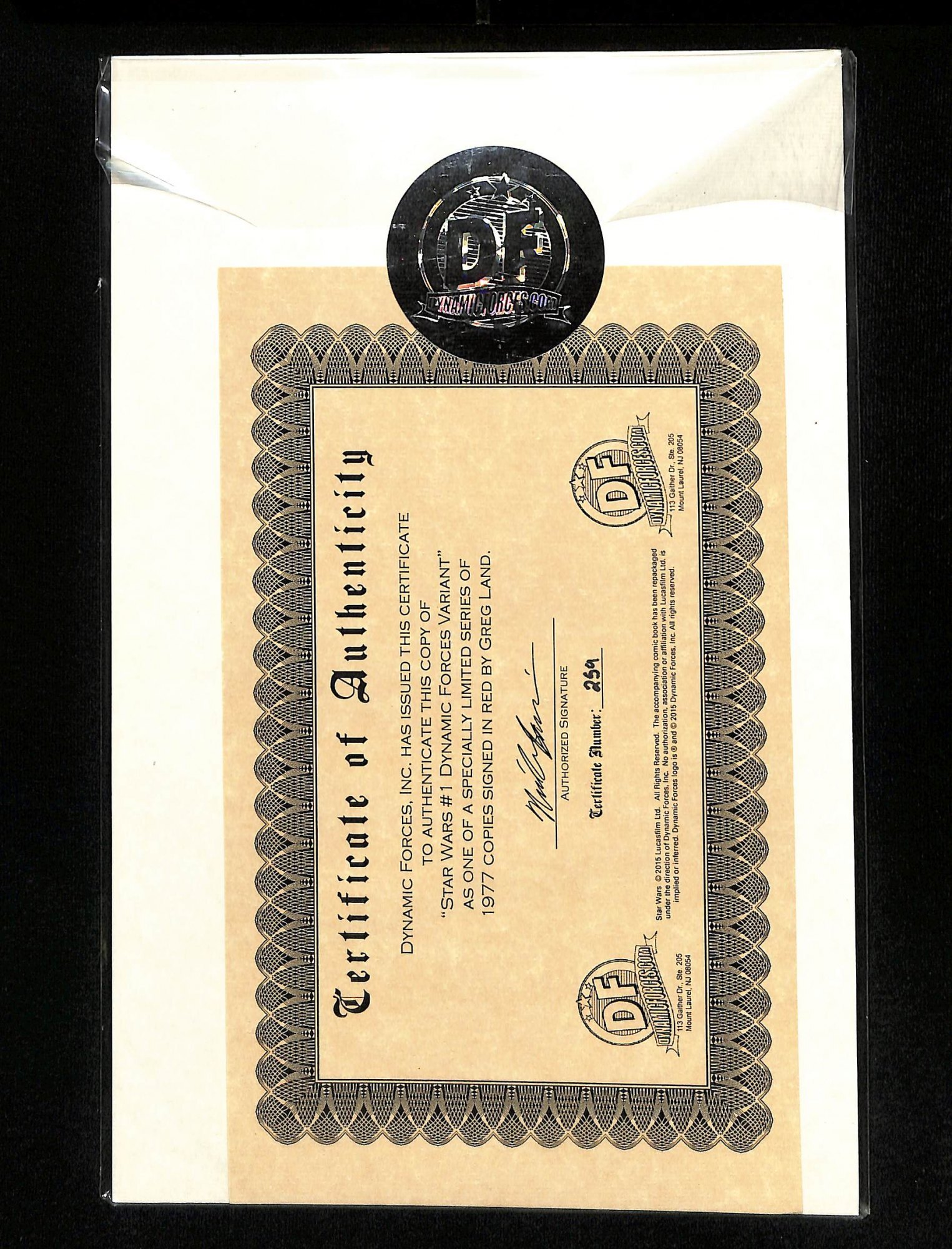 Star Wars (2015) #1 Signed by Greg Land w/ COA Dynamic Forces 1997 Greg Land