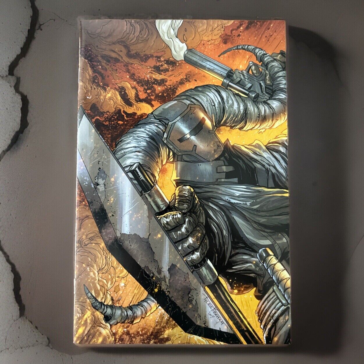 Immerse yourself in the intergalactic world of Star Wars with Crimson Reign #4 Marvel Comics 1st Print Tyler Kirkham Virgin Variant. This modern age comic book is the perfect addition to any fan's collection. Follow the adventure of your favorite characters as they navigate through a world of action, adventure, war, and science fiction. The colorful and vibrant style of the comic book, combined with the breathtaking variant cover, makes for a visually stunning piece. This single issue, boarded and in 1st edition, is ideal for a general audience and fans of US Comics. Don't miss the opportunity to own a piece of the Star Wars universe with this collector's item.Seller Information