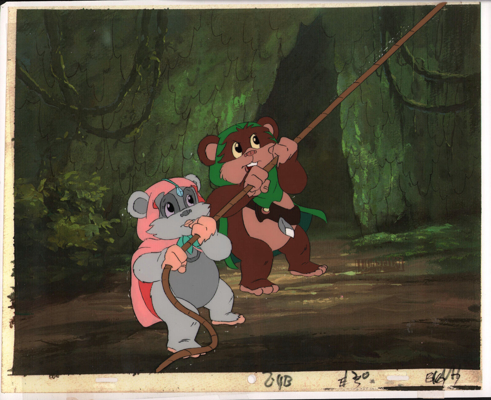 Star Wars: Ewoks Animation Cell Over Xeroxed Background - Rope Pulling