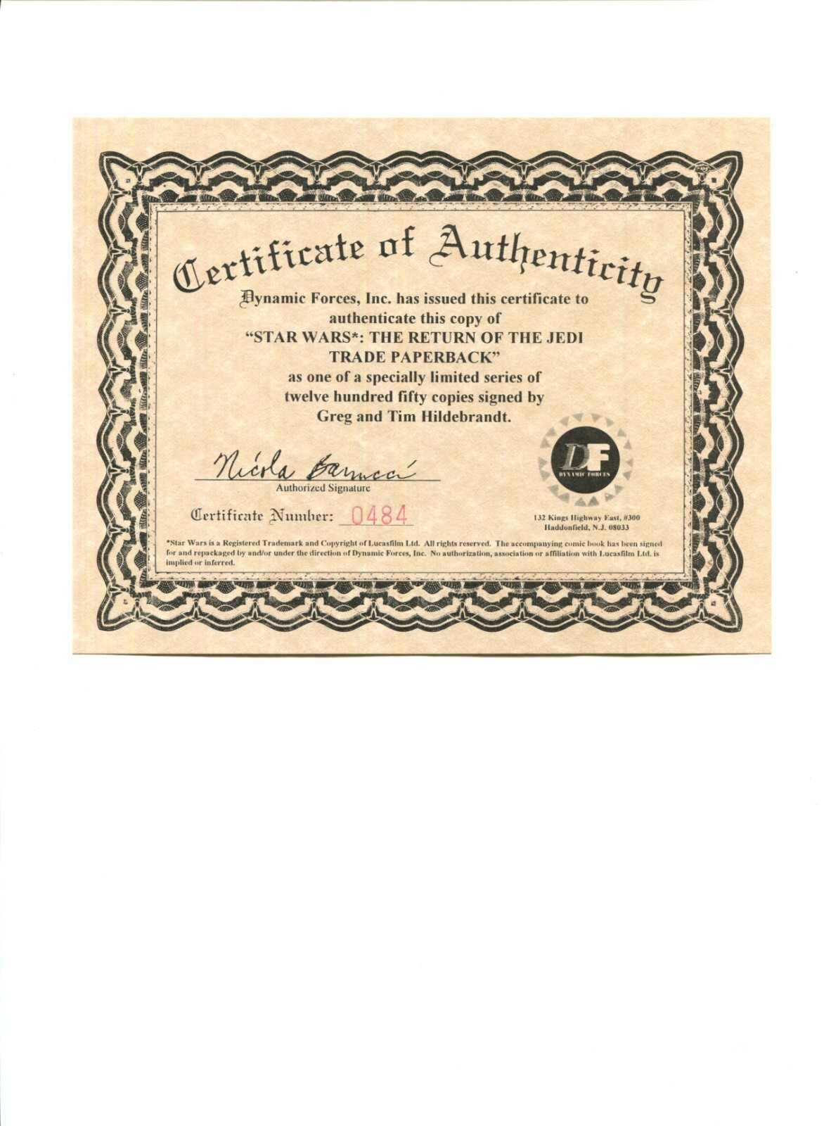 Star Wars: Return of the Jedi TPB Signed Greg & Tim Hildebrandt (9.0/9.2) 1997Size: 7" x 10"This item was uploaded by __LM__.WE COMBINE SHIPPING!!! Either wait for us to send you an invoice after you commit to buy or, if it makes you pay right away, message us back and we'll refund the excess charge. Buy as many single comic books as you want for one low flat shipping rate in the United States! International will be charged exact according to size and weight.If you have any specific questions or requests, please ask us prior to ordering and we'll get back to you as soon as we can.If there are any problems with your order whatsoever, please message us before leaving feedback and we'll be happy to work with you to fix the situation! We ship worldwide, combine purchases, and charge exact shipping. The price may vary based on size, weight, and location. If you are automatically overcharged for shipping, message us and we'll be happy to revise the invoice or refund you the excess amount. If you have any questions regarding shipping, please message us.International Buyers - Please Note:Import duties, taxes, and charges are not included in the item price or shipping cost. These charges are the buyer's responsibility.Please check with your country's customs office to determine what these additional costs will be prior to bidding or buying.Payment can be made by PayPal and credit cards directly.120,000+ items in total in my Hip store!Frequently Asked Questions:When are your operation hours?Our in office hours are Monday - Friday, 11 am - 8 pm. We are not open on weekends, so if you send us a request on Friday evening we won't get back to you until Monday afternoon. Please don't take it as us ignoring you! We will work on your request Monday and get back to you as soon as we can. Also, if you order from us on a Friday evening or Saturday morning we won't start processing your order until we open on Monday. That means on Monday it will be pulled and prepped for shipping, then picked up by the postman on Tuesday morning.When will you ship my item? The tracking hasn't moved.We realize you're eager to get your item, so if the tracking hasn't moved in a few days please don't be concerned. We give the postman a lot of packages daily, sometimes as many as 100, so he does not scan each item for us upon pickup as he says it would be too time consuming for him to do so. If you get a tracking number from us, that almost always means your item was picked up by the postman the next business day. The USPS is also imperfect. There are times when the tracking won't even show movement until it's in your area's regional distribution center. This is normal in our experience.Is the item pictured the exact one for sale?Yes! We don't use stock images and go through great lengths to scan or photograph everything we list. The item pictured is exactly what you should receive UNLESS it is a fixed price listing with multiple items available.Can you issue a COA?We can, upon request. Please make sure you leave us a note while checking out and shoot us a message immediately after requesting one, just to be sure.How do you grade?Grading is very subjective, but we are professionals with decades of grading experience between us who try the best we can to accurately describe the condition of the items we list.Anthony is an Overstreet Comic Book Price Guide AdvisorPlease see the grading chart below for a breakdown of how we grade:NOTE: We don't grade any raw books higher than 9.2, as once you go higher than that grading gets really subjective. If you buy a NM book from us, it may very well be higher than 9.2 but we play it safe and grade conservatively. 9.2 NM Near Mint 9.0 VF/NM Very Fine/Near Mint 8.5 VF+ Very Fine+ 8.0 VF Very Fine 7.5 VF- Very Fine- 7.0 FN/VF Fine/Very Fine 6.5 FN+ Fine+ 6.0 FN Fine 5.5 FN- Fine- 5.0 VG/FN Very Good/Fine 4.5 VG+ Very Good+ 4.0 VG Very Good 3.5 VG- Very Good- 3.0 GD/VG Good/Very Good 2.5 GD+ Good+ 2.0 GD Good 1.8 GD- Good- 1.5 FR/GD Fair/Good 1.0 FR Fair 0.5 PR PoorHow do you ship comics?We ship in rigid cardboard mailers to protect your comic book from the worst the mail system has to offer. Price varies based on the number of books you purchase, but we try to keep costs as low as we can and charge exact shipping. If it looks unusually high to you please send us a message and we'll be happy to double check for you.Do you combine shipping?Yes, of like items. Such as: several comics can fit in one cardboard mailer, as can more than one record. Multiple art pages can easily be combined because they are light and thin. Where combined shipping differs is with size and weight. For instance, two statues require a much bigger box. Same goes for CGCs, as the package gets bigger and heavier as you go.Do you ship well? I've had some bad experiences...You needn't worry; we are professionals who value your business and want your item to arrive safely as much as you do. I have been collecting for over 30 years. I send out items the way I would like to receive them.The tracking says my item is "OUT FOR DELIVERY" in New Jersey. Why is that?If the tracking indicates that the item is "OUT FOR DELIVERY" in NJ don't worry, it's just what the tracking says when it's carried over from the postman to the sorting center. This is normal for our Post Office and will not impact you receiving your item in a timely matter.What is the difference between a RUN and a LOT?Good question. A RUN will be a collection of consecutive issues with no breaks in between them. If it says RUN of #s 1 - 50 you will receive 50 consecutive comics. A LOT will be within a certain range, so a 50pc LOT will not contain consecutive books.I changed my mind after successfully winning the auction or fixed price listing, will you cancel the transaction?Please only bid or hit BUY IT NOW if you are willing to follow through and pay for the item, we will not cancel the transaction. As a seller, Hip penalizes us every time we cancel an order, so it is de