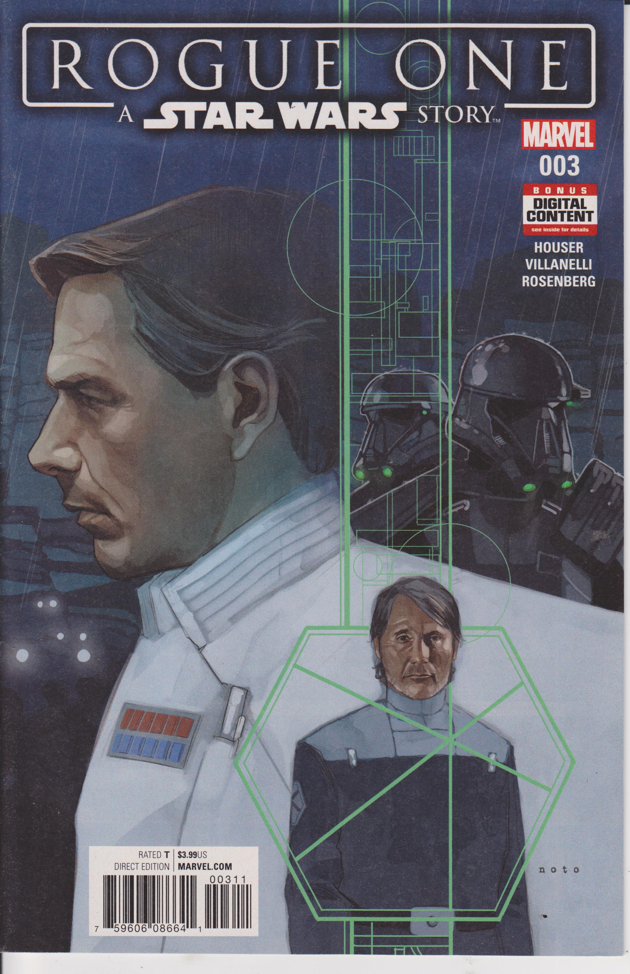 Star Wars: Rogue One Adaption #3 by Marvel Comics copyright 2017. I have graded the comic book, using the Overstreet Grading Guide, at VERY FINE with the following defects: Light stress marks along the spine. The corners starting to round. There is light yellowing of the pages.Seller Information