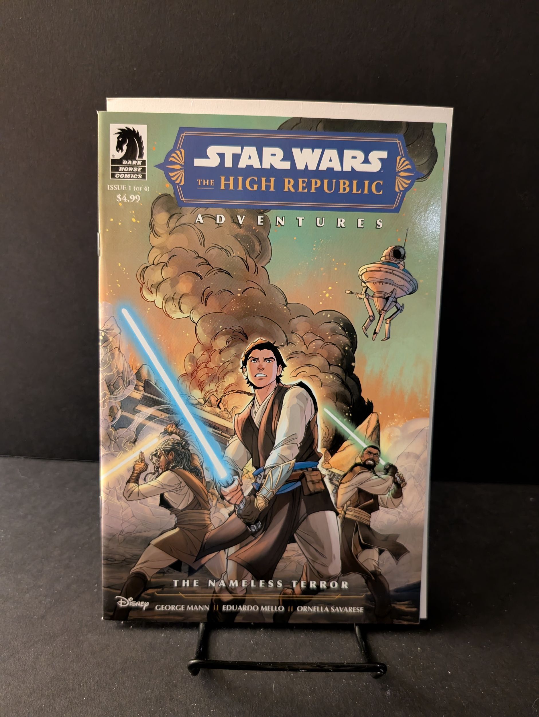 Written by George Mann. Art by Eduardo Mello, Ornella Savarese. Cover by Ornella Savarese, Eduardo Mello. Even in the shining light of the High Republic, there are shadows lurking in the galaxy. A Jedi mission to the planet Dalna suddenly comes under attack by unknown assailants. As the knights retreat to an ancient structure, it quickly becomes clear that they are far from safe. Something evil stalks the ruins, a ruthless predator, an unknown terror, a Nameless Fear! 32 pages, full color. Cover price $4.99.Seller Information