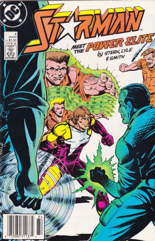 Item: Starman (1st Series) #4 (Newsstand) | Publisher: DC | Cover Date: December 1988 | Writer: Roger Stern | Artist: Tom Lyle | Cover Artist: Tom Lyle | Appearances: Power Elite, Starman (William Payton), Jayne Payton, the Power Elite | Storylines: Baptism of Fire! | Notes: Versus Power Elite; Winter 1988; newsstand edition | With Economy shipping, each additional comic ships for just 50 cents more to customers in the USA. This listing contains a stock photo and information from ComicBase™ and © Human Computing. The stock photo is for reference only. If you would like to see a photo of the actual item, please message us prior to purchasing.Seller Information
