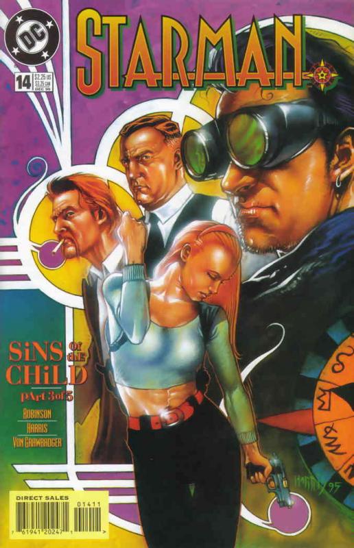 Item: Starman (2nd Series) #14 | Publisher: DC | Cover Date: December 1995 | Writer: James Robinson | Artist: Tony Harris, Tommy Lee Edwards, Stuart Immonen, Chris Sprouse, Andrew Robinson, Gary Erskine, Amanda Conner | Cover Artist: Tony Harris | Appearances: Shade (Richard Swift), Mist (Nash), Scalphunter (Brian Savage), Doctor Phosphorus (Alex Sartorius) | Storylines: Sins of the Child, Part 3; The Opal’s Day, The Odare’s Day | With Economy shipping, each additional comic ships for just 50 cents more to customers in the USA. This listing contains a stock photo and information from ComicBase™ and © Human Computing. The stock photo is for reference only. If you would like to see a photo of the actual item, please message us prior to purchasing.Seller Information