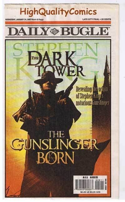Grade: 9.4 Near MintSTEPHEN KING : Promo Set, 5 items, Cards, Book Marks,NM The DAILY BUGLE Jan 2007 Edition, featuring : STEPHEN KING : DARK TOWER , The Gunslinger Born series...+ 3 cards, and a BookMark.... Name of Comic(s)/Title?: The DAILY BUGLE Jan 2007 Edition, featuring : STEPHEN KING : DARK TOWER , The Gunslinger Born series...+ 3 cards and a Bookmark..... Publisher: Marvel Comics......... Art by/Featuring/Stories?: Featuring an issue of the STEPHEN KING : DARK TOWER newpaper...Artist(s): Jae Lee, Richard Isanove....Writer(s): n/a....Front Cover: Lee, Isanove....Rated : PG13+...Story(s): "n/a."......."........Gives details on the upcoming series. ...+ 3 promo cards for upcoming series, and a Bookmark....5 items in all Grade of item? : This issue is in NEAR MINT condition (brand new, unread)....The other items are brand new in NEAR MINT conditions Created when? : 2007 through 2009.... Front Cover description : As new, with very slight handling and/or printer's wear (due mainly to the newsprint / paper quality, that was used in the making of this item, so might have a printer's knit/line)....Cards are brand new, no damage... Back Cover description : As new.... Page quality description : As new.... Tape or writing?: No... How are staples?: Staples are secure.... Flat & supple : Yes.... Sorry the pics are not as good as the real thing... ...1st Printings!...... ...Lots more STEPHEN KING, DARK TOWER, PROMO, & OVERSTOCK items in our store. Be sure to check out all of our current on-going auctions!! Lots of great product at affordable prices!!! Bookmark our listings with (control + D). Lots more coming in the next few weeks!!!! Check out the scan(s). If you like this? Our store name is HighQualityComics...aka HQComics...We have been doing mail-order since 1988.We guarantee Absolute Satisfaction on All Orders! Shipping in a box. Combine auctions to save on postage. INTERNATIONAL CUSTOMERS : I use Hip's global shipping program.