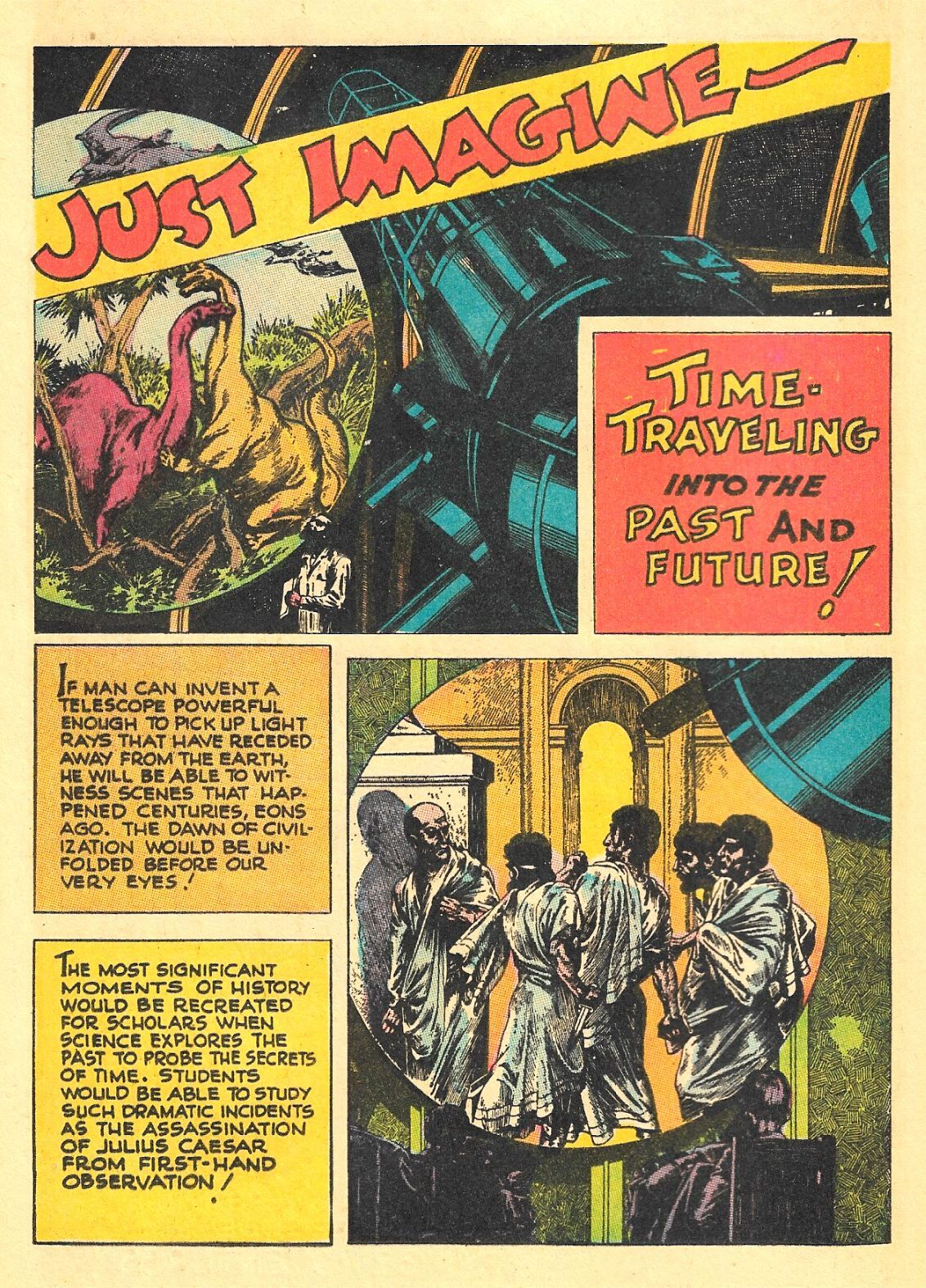 You also get the classic story, "Traveling Into The Past And Future!" by Pulp artist extraordinaire Virgil Finlay, as well as "Designs for Disaster" by Nick Cardy, in which a set designer's sets for a film cause tragedy to strike an entire town!