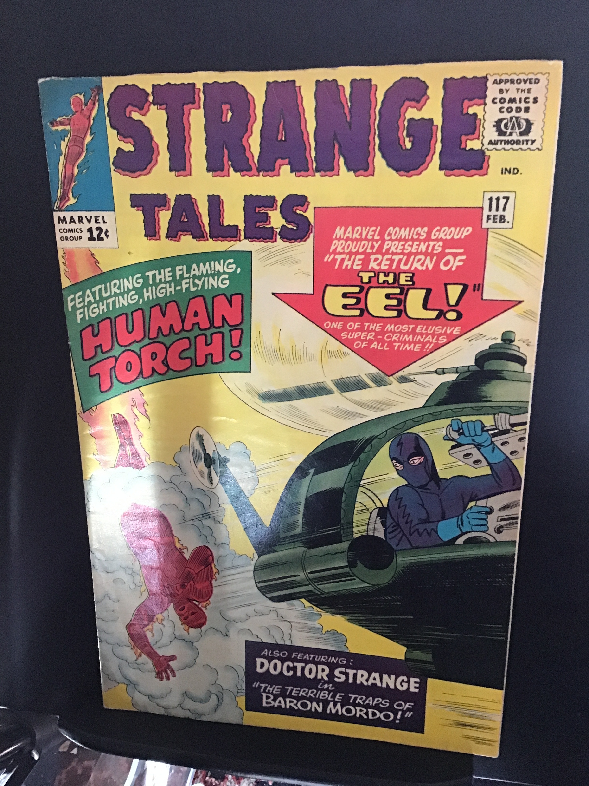 Strange Tales #117 (1964) Book has deep rich color and very nice eye-appeal on this all time classic Torch versus The Eel cover key. With cream/heavy heavy cream Interiors which we have given a grade break for and A faint bend of the lower spine side of the front cover Which can be seen when the book is held up to the lite along with fête rounding at the top of the spine. With overall light wear appropriate to grade.Seller Information