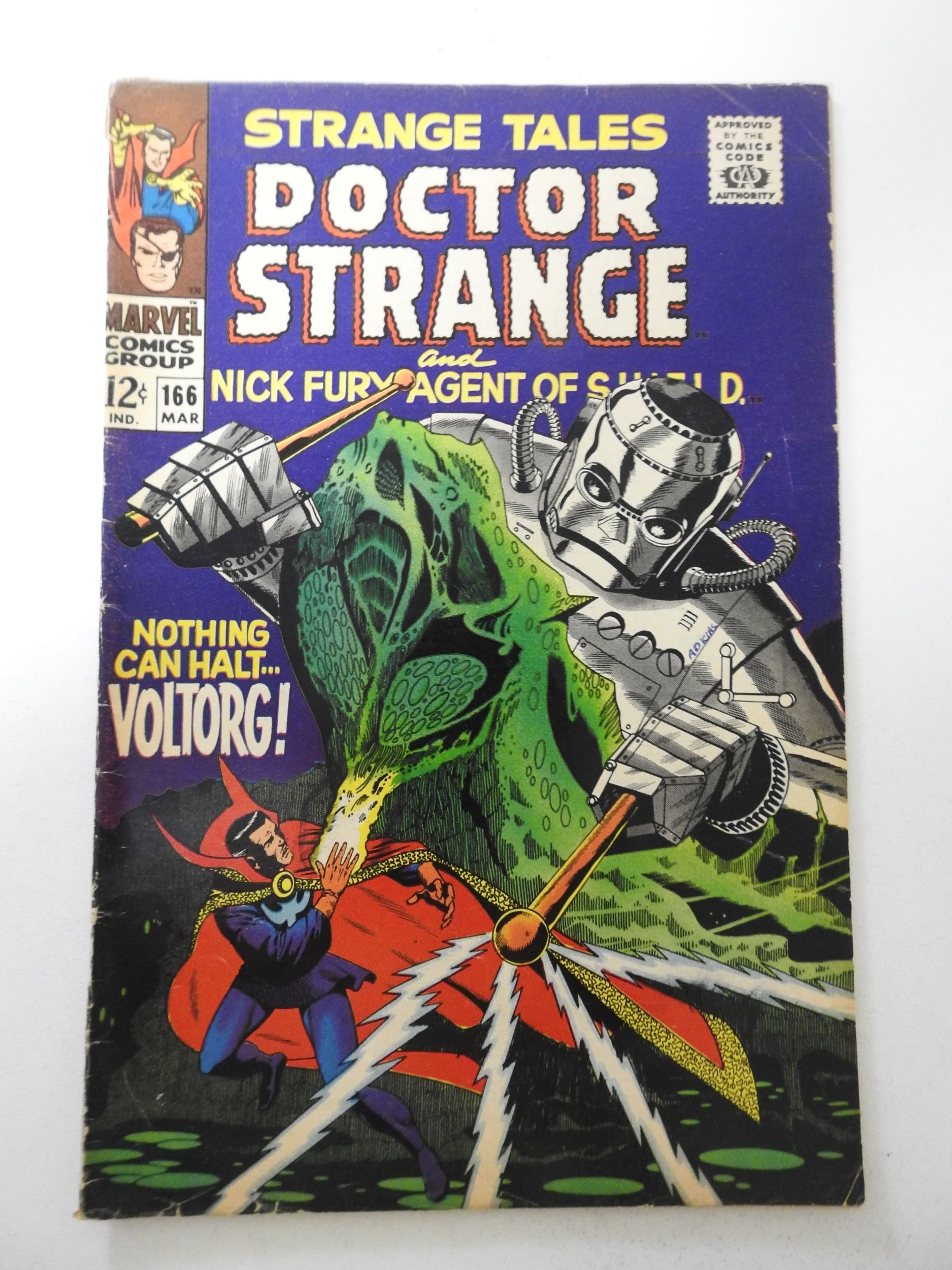 Strange Tales #166 (1968) VG Condition ink fc, 1/2 in spine split