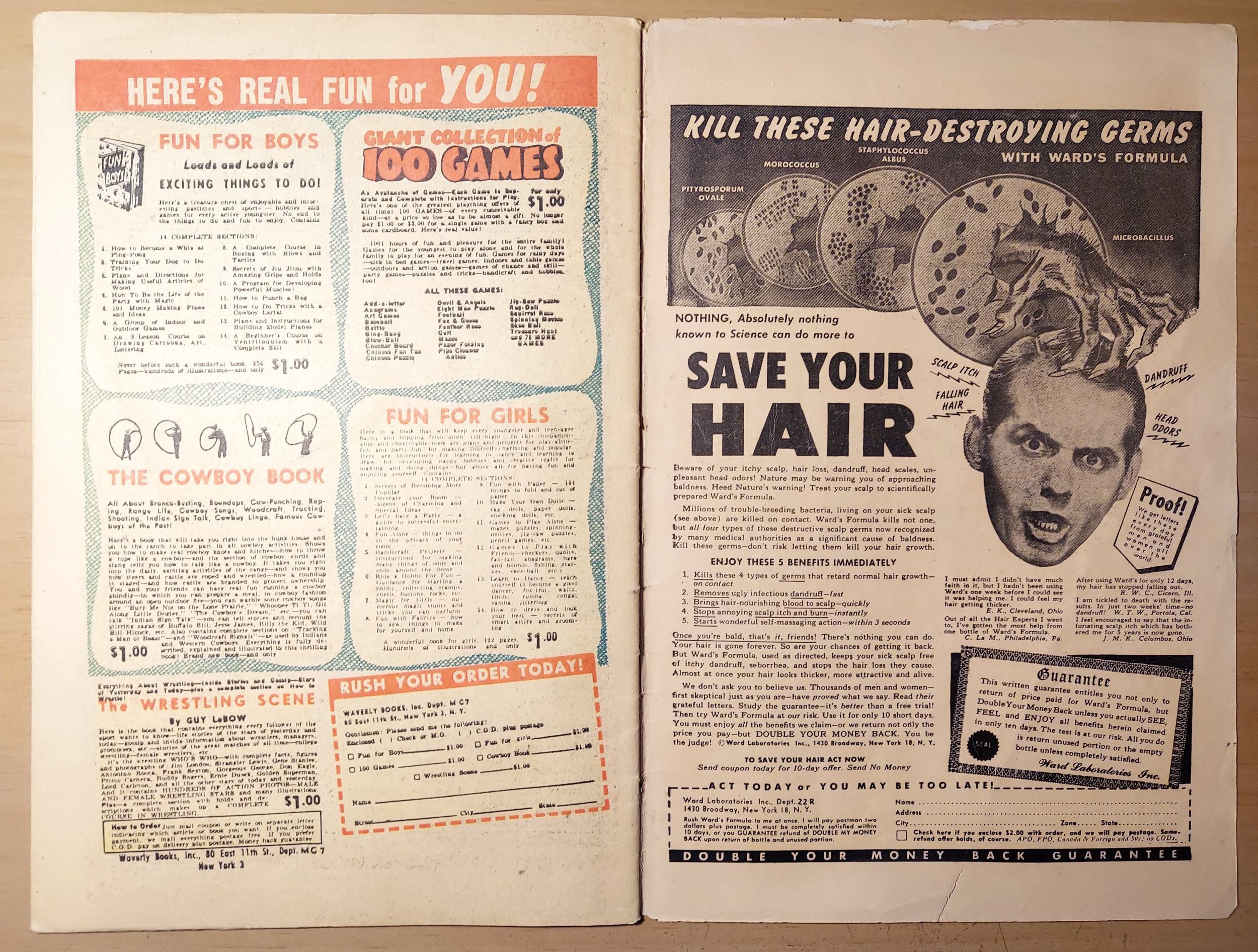 This is a complete copy. The cover is attached to the single staple, but barely so; the centerfold is firmly attached. There are missing chips on the right side of the front cover edge that are masked somewhat by an aspiring Michaelangelo who colored the visible edge of the splash page with the appropriate colors in order to camouflage the missing pieces of the cover. This can be seen plainly in the second pic where I inserted a white backing board between the cover and splash page for contrast. Not a bad copy for the grade.Seller Information