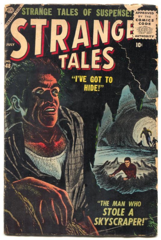 Grade: G/VGStrange Tales #48 1956- Burgos cover- Atlas horror G/VG Horror and mystery stories. Tape inside cover. Grade: G/VG SKU: U2-104-229