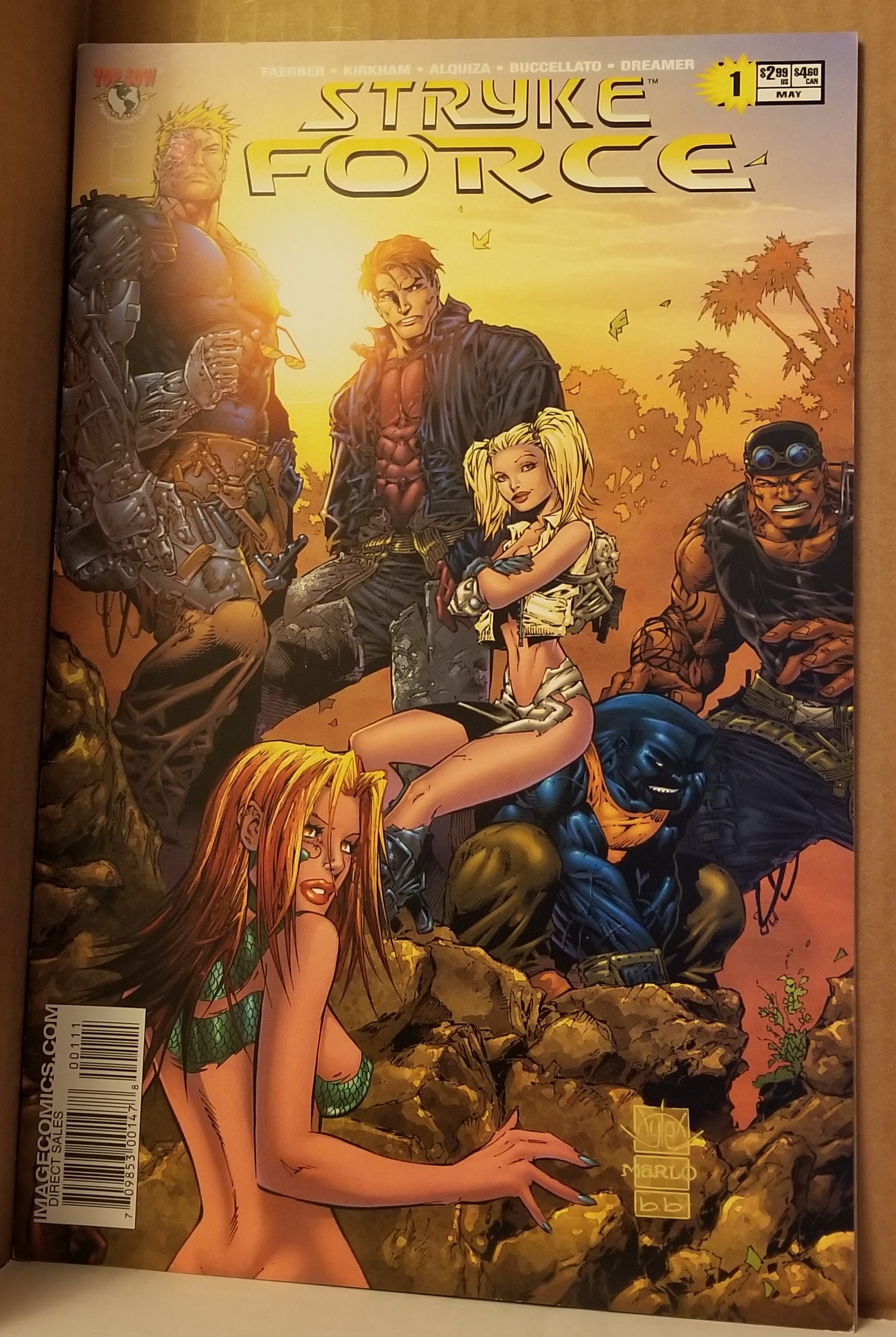 Strykeforce #1 by Top Cow Comics copyright 2004. I have graded the comic book, using the Overstreet Grading Guide, at FINE/VERY FINE with the following defects: A couple of light stress marks along the spine. Corners are rounded. There is yellowing of the pages.Seller Information