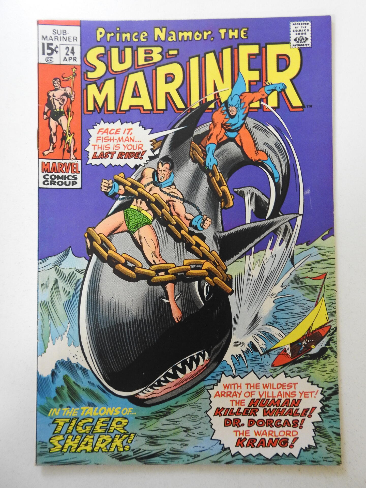 Sub-Mariner #24 (1970) VG Cond! Cover and 1st 3 wraps detached at bottom staple