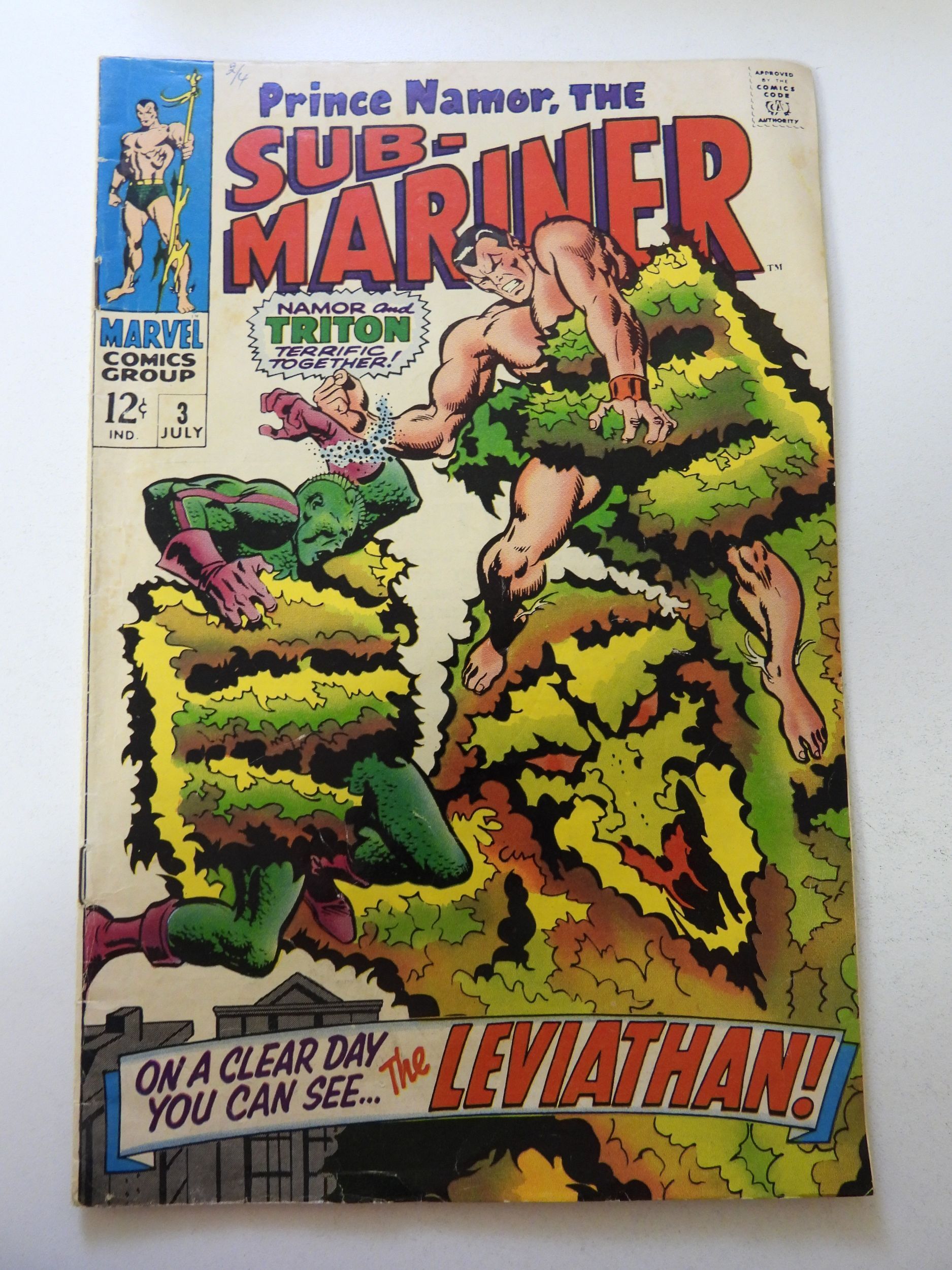 Sub-Mariner #3 (1968) VG Condition centerfold detached at one staple