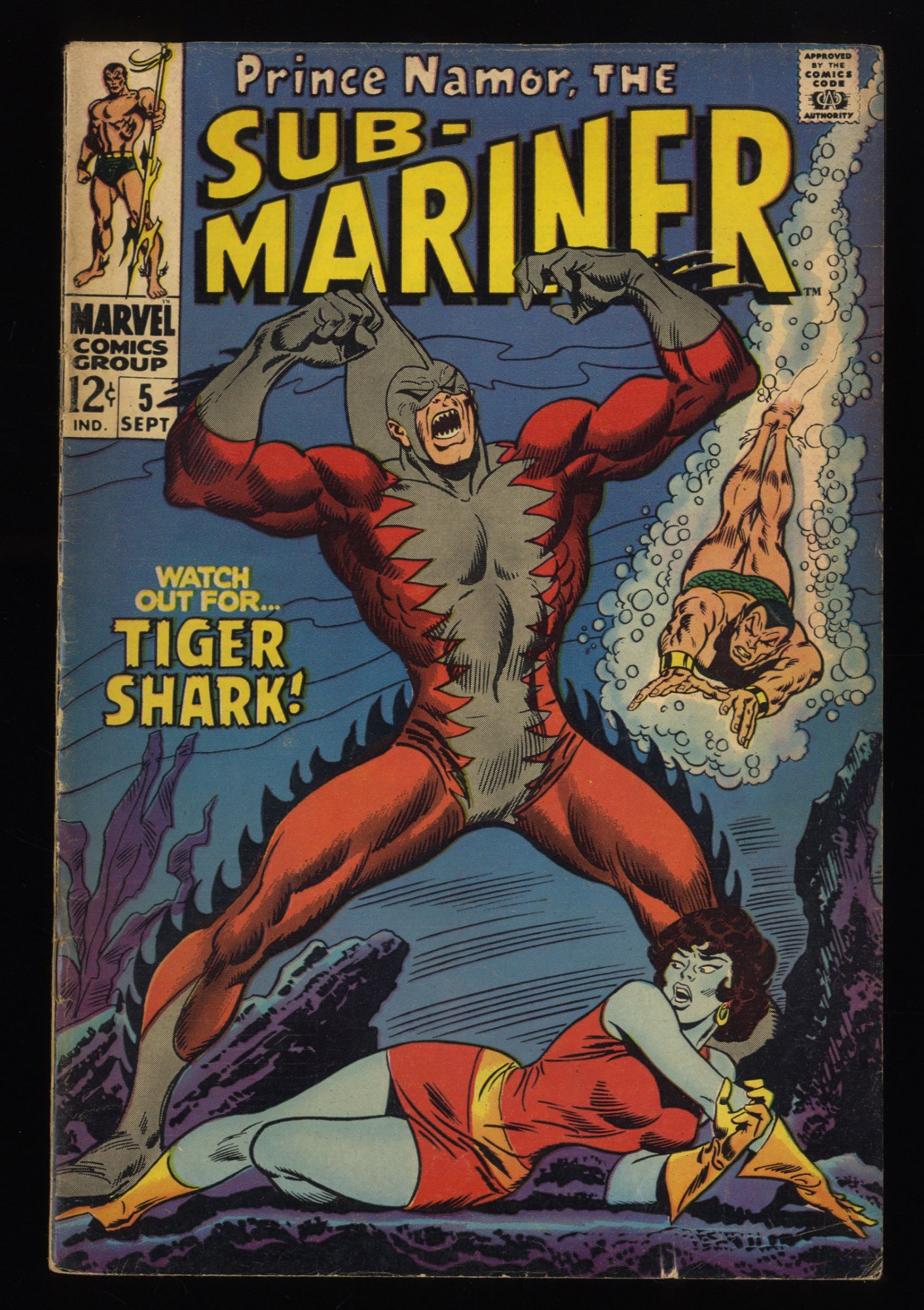 Sub-Mariner #5 VG+ 4.5 1st Appearance Tiger Shark! Roy Thomas!