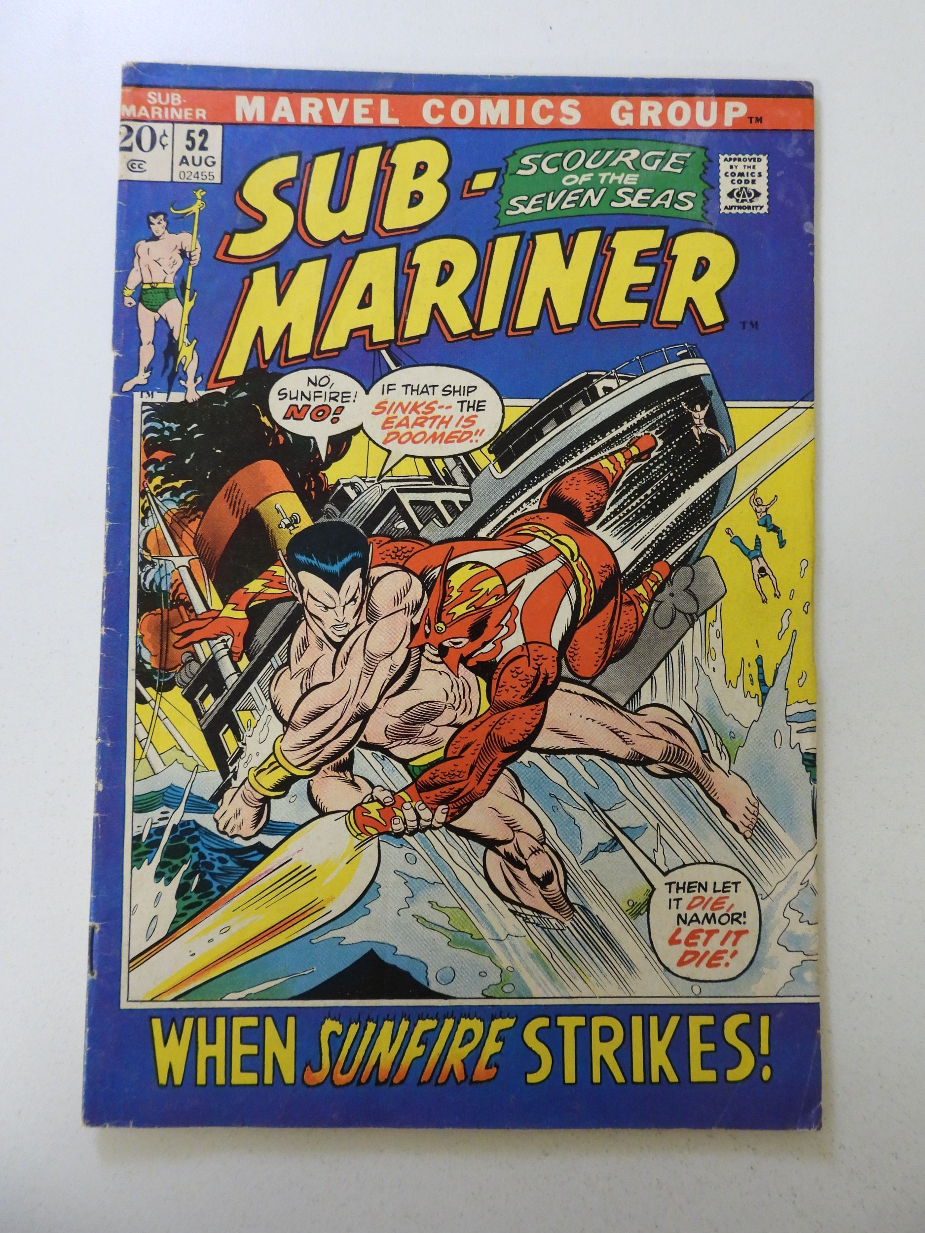 Sub-Mariner #52 (1972) VG+ condition "stains front cover"