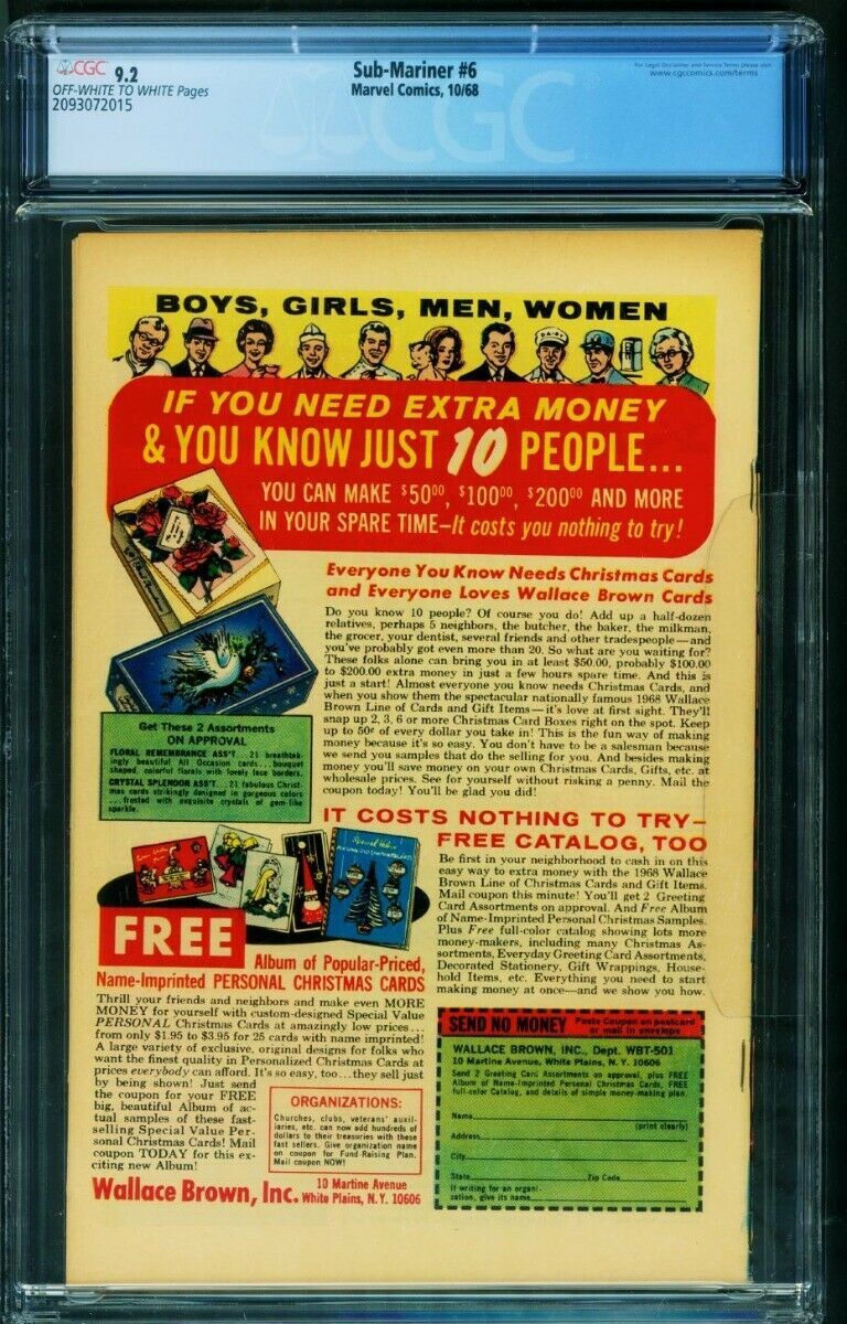 Sub-mariner #6 CGC 9.2 1968-marvel Comic-2093072015
