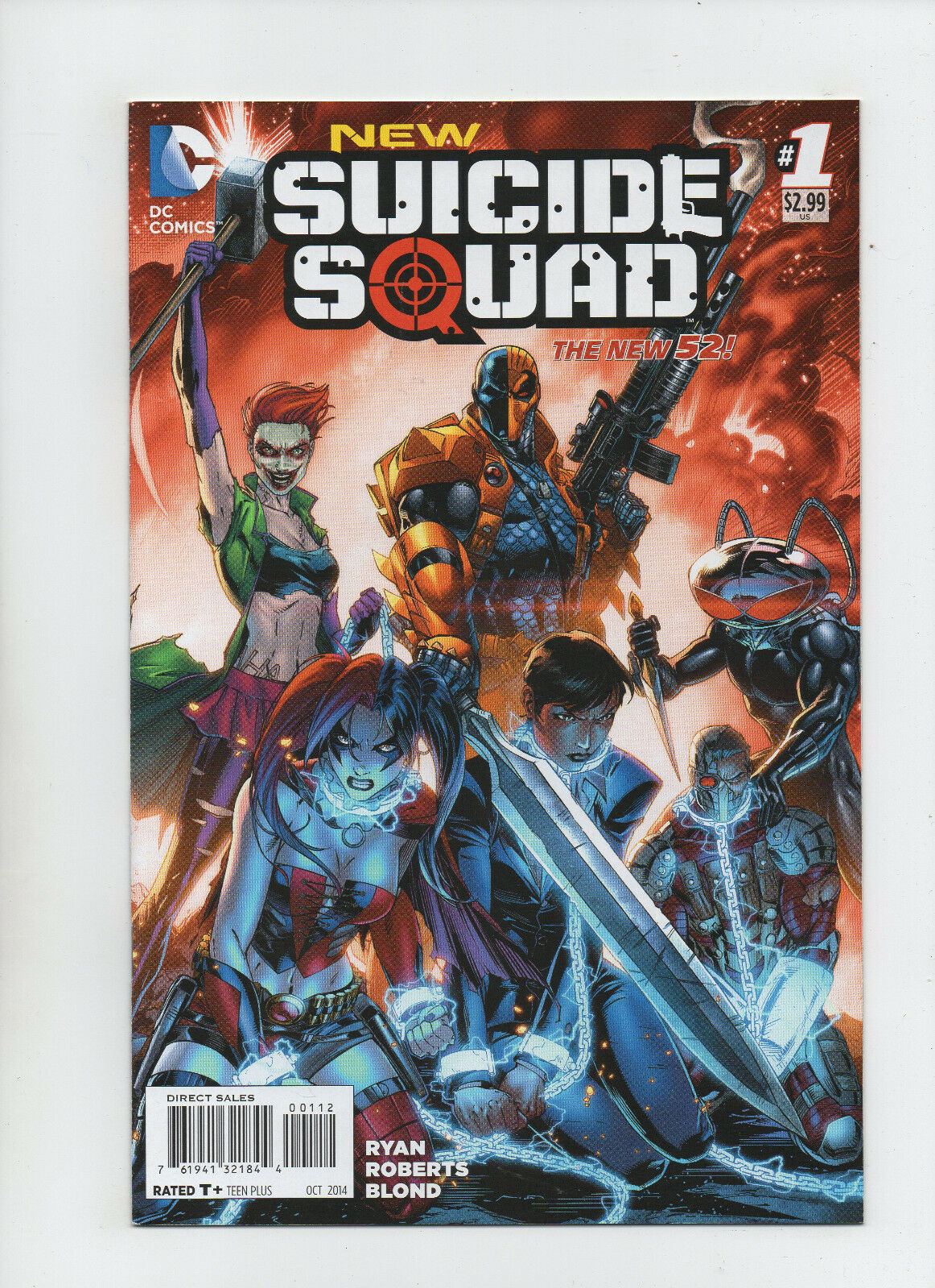 Suicide Squad #1 - New 52! - 2nd Printing (Grade 9.2) 2014Size: 7" x 10"This item was uploaded by Kristen.If you have any specific questions or requests, please ask us prior to ordering and we'll get back to you as soon as we can. If there are any problems with your order whatsoever, please message us before leaving feedback and we'll be happy to work with you to fix the situation! We ship worldwide, combine purchases, and charge exact shipping. The price may vary based on size, weight, and location. If you are automatically overcharged for shipping, message us and we'll be happy to revise the invoice or refund you the excess amount. If you have any questions regarding shipping, please message us. International Buyers - Please Note: Import duties, taxes, and charges are not included in the item price or shipping cost. These charges are the buyer's responsibility. Please check with your country's customs office to determine what these additional costs will be prior to bidding or buying. Payment can be made by PayPal and credit cards directly. 70,000+ items in total in my Hip store! Frequently Asked Questions: When are your operation hours?Our in office hours are Monday - Friday, 11 am - 9 pm. We are not open on weekends, so if you send us a request on Friday evening we won't get back to you until Monday afternoon. Please don't take it as us ignoring you! We will work on your request Monday and get back to you as soon as we can. Also, if you order from us on a Friday evening or Saturday morning we won't start processing your order until we open on Monday. That means on Monday it will be pulled and prepped for shipping, then picked up by the postman on Tuesday morning.When will you ship my item? The tracking hasn't moved.We realize you're eager to get your item, so if the tracking hasn't moved in a few days please don't be concerned. We give the postman a lot of packages daily, sometimes as many as 100, so he does not scan each item for us upon pickup as he says it would be too time consuming for him to do so. If you get a tracking number from us, that almost always means your item was picked up by the postman the next business day. The USPS is also imperfect. There are times when the tracking won't even show movement until it's in your area's regional distribution center. This is normal in our experience. Is the item pictured the exact one for sale?Yes! We don't use stock images and go through great lengths to scan or photograph everything we list. The item pictured is exactly what you should receive UNLESS it is a fixed price listing with multiple items available. Can you issue a COA? We can, upon request. Please make sure you leave us a note while checking out and shoot us a message immediately after requesting one, just to be sure. How do you grade?Grading is very subjective, but we are professionals with decades of grading experience between us who try the best we can to accurately describe the condition of the items we list. Anthony is an Overstreet Comic Book Price Guide Advisor Please see the grading chart below for a breakdown of how we grade: NOTE: We don't grade any raw books higher than 9.2, as once you go higher than that grading gets really subjective. If you buy a NM book from us, it may very well be higher than 9.2 but we play it safe and grade conservatively. 9.2 NM Near Mint 9.0 VF/NM Very Fine/Near Mint 8.5 VF+ Very Fine+ 8.0 VF Very Fine 7.5 VF- Very Fine- 7.0 FN/VF Fine/Very Fine 6.5 FN+ Fine+ 6.0 FN Fine 5.5 FN- Fine- 5.0 VG/FN Very Good/Fine 4.5 VG+ Very Good+ 4.0 VG Very Good 3.5 VG- Very Good- 3.0 GD/VG Good/Very Good 2.5 GD+ Good+ 2.0 GD Good 1.8 GD- Good- 1.5 FR/GD Fair/Good 1.0 FR Fair 0.5 PR PoorHow do you ship comics? We ship in rigid cardboard mailers to protect your comic book from the worst the mail system has to offer. Price varies based on the number of books you purchase, but we try to keep costs as low as we can and charge exact shipping. If it looks unusually high to you please send us a message and we'll be happy to double check for you. Do you combine shipping? Yes, of like items. Such as: several comics can fit in one cardboard mailer, as can more than one record. Multiple art pages can easily be combined because they are light and thin. Where combined shipping differs is with size and weight. For instance, two statues require a much bigger box. Same goes for CGCs, as the package gets bigger and heavier as you go. Do you ship well? I've had some bad experiences... You needn't worry; we are professionals who value your business and want your item to arrive safely as much as you do. I have been collecting for over 30 years. I send out items the way I would like to receive them. The tracking says my item is "OUT FOR DELIVERY" in New Jersey. Why is that?If the tracking indicates that the item is "OUT FOR DELIVERY" in NJ don't worry, it's just what the tracking says when it's carried over from the postman to the sorting center. This is normal for our Post Office and will not impact you receiving your item in a timely matter.What is the difference between a RUN and a LOT?Good question. A RUN will be a collection of consecutive issues with no breaks in between them. If it says RUN of #s 1 - 50 you will receive 50 consecutive comics. A LOT will be within a certain range, so a 50pc LOT will not contain consecutive books.I changed my mind after successfully winning the auction or fixed price listing, will you cancel the transaction? Please only bid or hit BUY IT NOW if you are willing to follow through and pay for the item, we will not cancel the transaction. As a seller, Hip penalizes us every time we cancel an order, so it is detrimental to our business to do so. Therefore if you will not pay, then you'll have to let Hip cycle this to an "unpaid item" and accept whatever action Hip deems necessary. 70,000+ items in total in my Hip store! MEET OUR STAFF: Pictured left to right, my employees: Chris, Connelly, Bobby, & Shannon alongside my family: Sharon, Mysel
