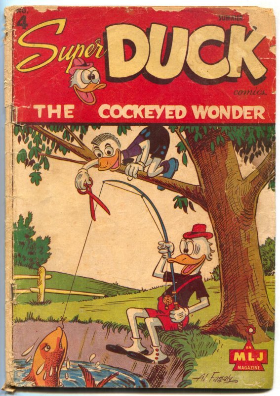 Grade: P Super Duck #4 1945- Golden Age MLJ Funny Animals- bargain copy Al Fagaly art. Piece missing from back cover and last 20 pages. Affects art, text is OK and still readable. Grade: P SKU: CK42-165