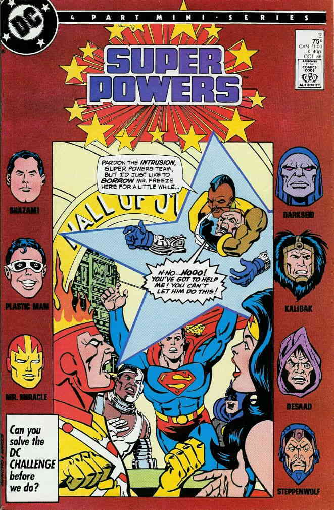 Item: Super Powers (3rd Series) #2 | Publisher: DC | Cover Date: October 1986 | Writer: Paul Kupperberg | Artist: Carmine Infantino | Cover Artist: Carmine Infantino | Appearances: Superman (Clark Kent/Kal-El), Firestorm (Ronnie Raymond & Martin Stein), Batman (Bruce Wayne), Wonder Woman (Diana Prince), Mr. Freeze (Victor Fries), Tyr, Darkseid, Desaad, Mr. Miracle (Scott Free), Orion (New Gods), Golden Pharaoh, Captain Marvel (Billy Batson), Cyclotron, Cyborg (Victor Stone), Plastic Man (Patrick O'Brien), Samurai, Steppenwolf, Kalibak | Storylines: Escape | Notes: Origin of Captain Marvel; Origin of Plastic Man | With Economy shipping, each additional comic ships for just 50 cents more to customers in the USA. This listing contains a stock photo and information from ComicBase™ and © Human Computing. The stock photo is for reference only. If you would like to see a photo of the actual item, please message us prior to purchasing.Seller Information