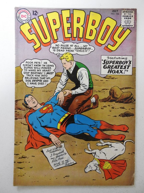 Superboy #106 (1963) VG Condition moisture stain