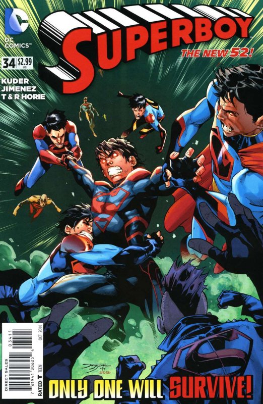 Item: Superboy (5th Series) #34 | Publisher: DC | Cover Date: October 2014 | Writer: Aaron Kuder | Artist: Jorge Jimenez | Cover Artist: Jorge Jimenez | Appearances: Superboy (Jon Kent), Guardian, Dr. Harold Alexander Grey, Aya, Niti, Peter, Ravager, Superboy | Storylines: Know They Self | Notes: Final Issue | With Economy shipping, each additional comic ships for just 50 cents more to customers in the USA. This listing contains a stock photo and information from ComicBase™ and © Human Computing. The stock photo is for reference only. If you would like to see a photo of the actual item, please message us prior to purchasing.Seller Information