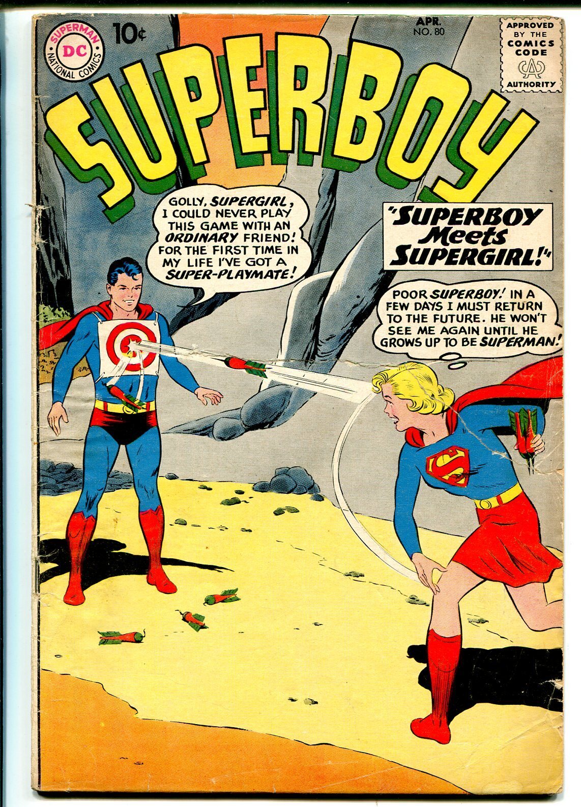 Grade: GSuperboy #80 1960-DC Comics-Supergirl-GOOD -Superboy meets Supergirl for the first time -Tear on cover through Supergirl's body, tape inside cover Grade: G SKU: GA-14-107