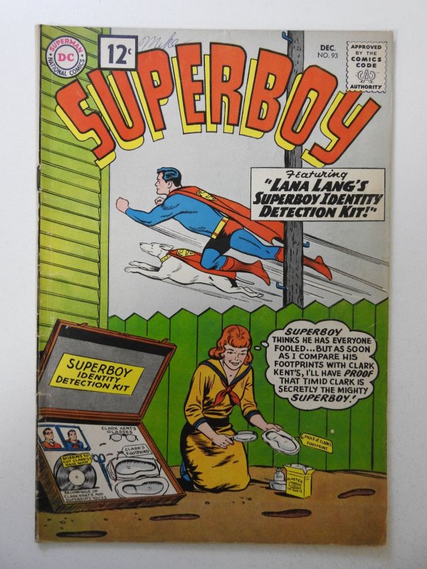 Superboy #93 (1961) VG Condition ink fc and 1st page