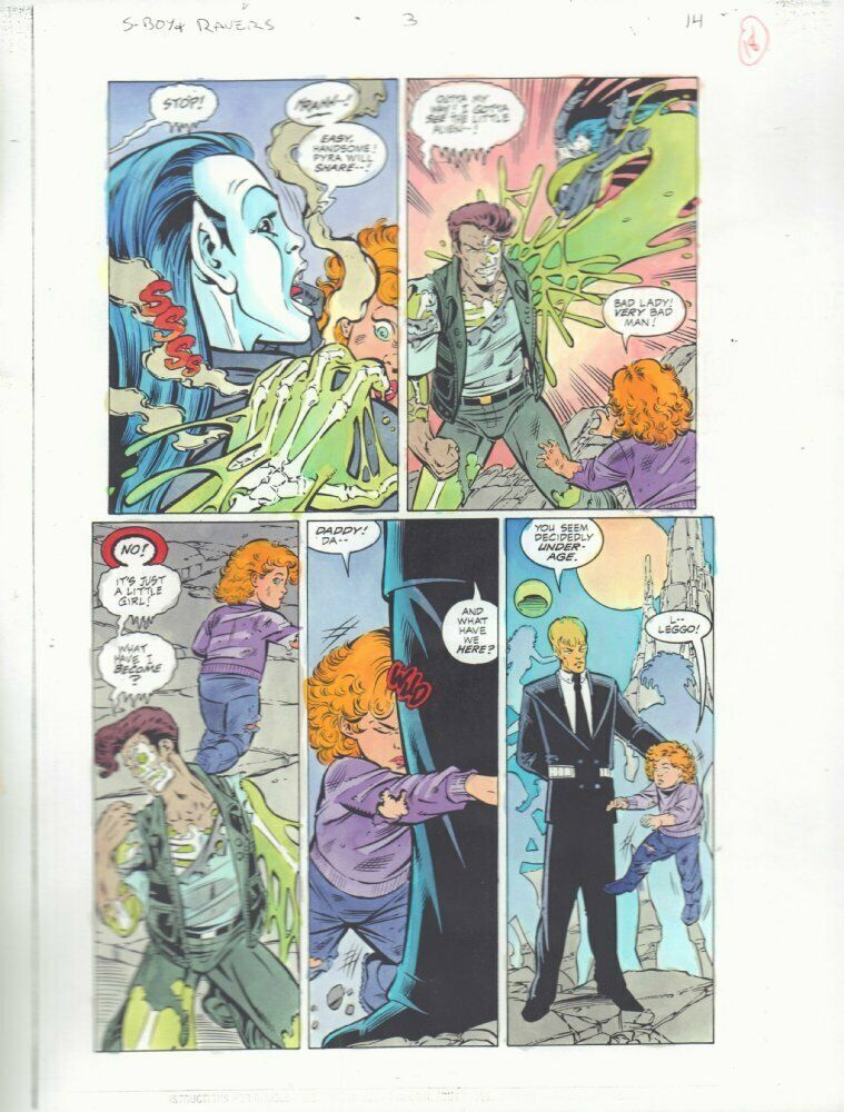 Superboy and the Ravers #3 p.14 Color Guide Art - Kindred Marx and Half-Life - 1996Paul Pelletier pencillerDan Davis inkerJohn Kalisz painter"This is a B&W STAT photo copy that the colorist, John Kalisz, painted over to create the published page. This is color art only, the original pencils and inks aren't on here." 9.5" x 11" with some moderate wear along the edges.This item was uploaded by Bobby.If you have any specific questions or requests, please ask us prior to ordering and we'll get back to you as soon as we can. If there are any problems with your order whatsoever, please message us before leaving feedback and we'll be happy to work with you to fix the situation!We ship worldwide, combine purchases, and charge exact shipping. The price may vary based on size, weight, and location. If you are automatically overcharged for shipping, message us and we'll be happy to revise the invoice or refund you the excess amount. If you have any questions regarding shipping, please message us.International Buyers - Please Note: Import duties, taxes, and charges are not included in the item price or shipping cost. These charges are the buyer's responsibility. Please check with your country's customs office to determine what these additional costs will be prior to bidding or buying. Payment can be made by PayPal and credit cards directly. 120,000+ items in total in my Hip store! Frequently Asked Questions: When are your operation hours?Our in office hours are Monday - Friday, 11 am - 8 pm. We are not open on weekends, so if you send us a request on Friday evening we won't get back to you until Monday afternoon. Please don't take it as us ignoring you! We will work on your request Monday and get back to you as soon as we can. Also, if you order from us on a Friday evening or Saturday morning we won't start processing your order until we open on Monday. That means on Monday it will be pulled and prepped for shipping, then picked up by the postman on Tuesday morning.When will you ship my item? The tracking hasn't moved.We realize you're eager to get your item, so if the tracking hasn't moved in a few days please don't be concerned. We give the postman a lot of packages daily, sometimes as many as 100, so he does not scan each item for us upon pickup as he says it would be too time consuming for him to do so. If you get a tracking number from us, that almost always means your item was picked up by the postman the next business day. The USPS is also imperfect. There are times when the tracking won't even show movement until it's in your area's regional distribution center. This is normal in our experience. Is this original artwork? Yes! I am a professional comic book art dealer with 20+ years experience. The image pictured is one of a kind original artwork unless otherwise described. Can you issue a COA? We can, upon request. Please make sure you leave us a note while checking out and shoot us a message immediately after requesting one, just to be sure. What is your base shipping for art? $10 for Domestic, International varies depending on location. Please use Hip's shipping calculator for specifics. How do you ship comics?We ship in rigid cardboard mailers to protect your comic book from the worst the mail system has to offer. Price varies based on the number of books you purchase, but we try to keep costs as low as we can and charge exact shipping. If it looks unusually high to you please send us a message and we'll be happy to double check for you. What is your base shipping for CGC comics? Domestic for CGCs are $10 for the first and $5 for each additional one you add. Do you combine shipping? Yes, of like items. Such as: several comics can fit in one cardboard mailer, as can more than one record. Multiple art pages can easily be combined because they are light and thin. Where combined shipping differs is with size and weight. For instance, two statues require a much bigger box. Same goes for CGCs, as the package gets bigger and heavier as you go. Do you ship well? I've had some bad experiences... You needn't worry; we are professionals who value your business and want your item to arrive safely as much as you do. I have been collecting for over 30 years. I send out items the way I would like to receive them. The tracking says my item is "OUT FOR DELIVERY" in New Jersey. Why is that?If the tracking indicates that the item is "OUT FOR DELIVERY" in NJ don't worry, it's just what the tracking says when it's carried over from the postman to the sorting center. This is normal for our Post Office and will not impact you receiving your item in a timely matter.Have these CGCs had any previous owners? No. I have personally sent in almost all of these to CGC and had them returned to me, offering them fresh to the market for the 1st time. I changed my mind after successfully winning the auction or fixed price listing, will you cancel the transaction? Please only bid or hit BUY IT NOW if you are willing to follow through and pay for the item, we will not cancel the transaction. As a seller, Hip penalizes us every time we cancel an order, so it is detrimental to our business to do so. Therefore if you will not pay, then you'll have to let Hip cycle this to an "unpaid item" and accept whatever action Hip deems necessary. 120,000+ items in total in my Hip store! MEET OUR STAFF: Pictured left to right, my employees: Bobby, Justin, Mario V., Connelly, Mario B., Alejandro, Sumie, and Anthony.AS SEEN ON TV : I have been buying and selling artwork and comics for about 20 years. If you are new to buying art or comics feel free to ask any questions that you may have. 120,000+ items in total in my Hip store! Small, Regular, and Large Portfolios available; see my Hip store!